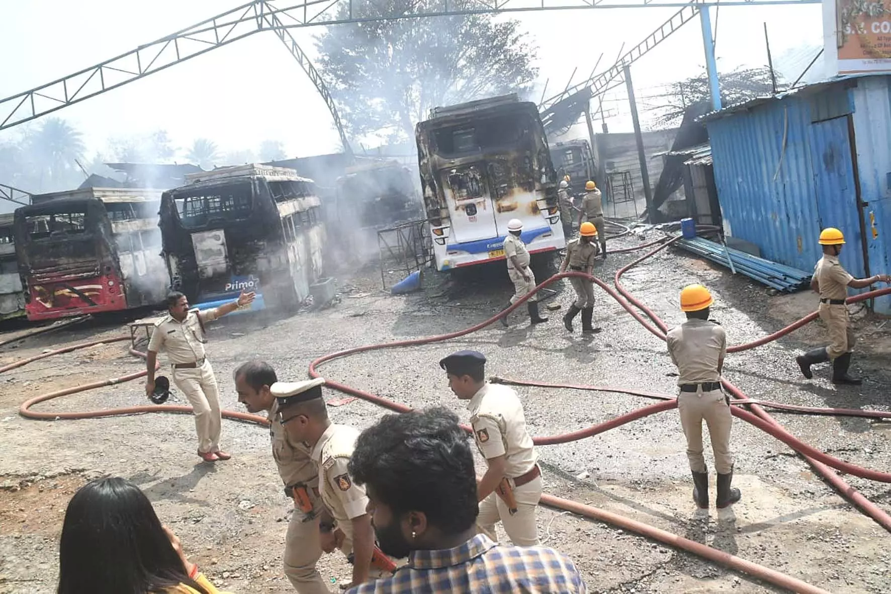 VIDEO- ಬೆಂಗಳೂರಿನಲ್ಲಿ ಮತ್ತೊಂದು ಅಗ್ನಿ ಅವಘಡ; ಹಲವು ಬಸ್ ಗಳು ಬೆಂಕಿಗಾಹುತಿ
