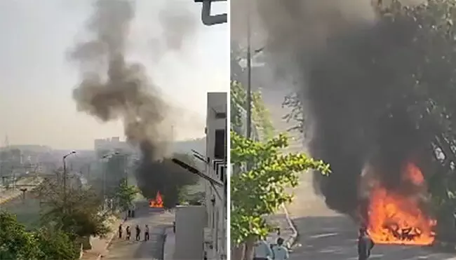 ಬೈಯಪ್ಪನಹಳ್ಳಿ ಮೆಟ್ರೋ ನಿಲ್ದಾಣದಲ್ಲಿ ಆಕಸ್ಮಿಕ ಬೆಂಕಿಗೆ ಸುಟ್ಟು ಕರಕಲಾದ ಸಿಬ್ಬಂದಿ ಕಾರು
