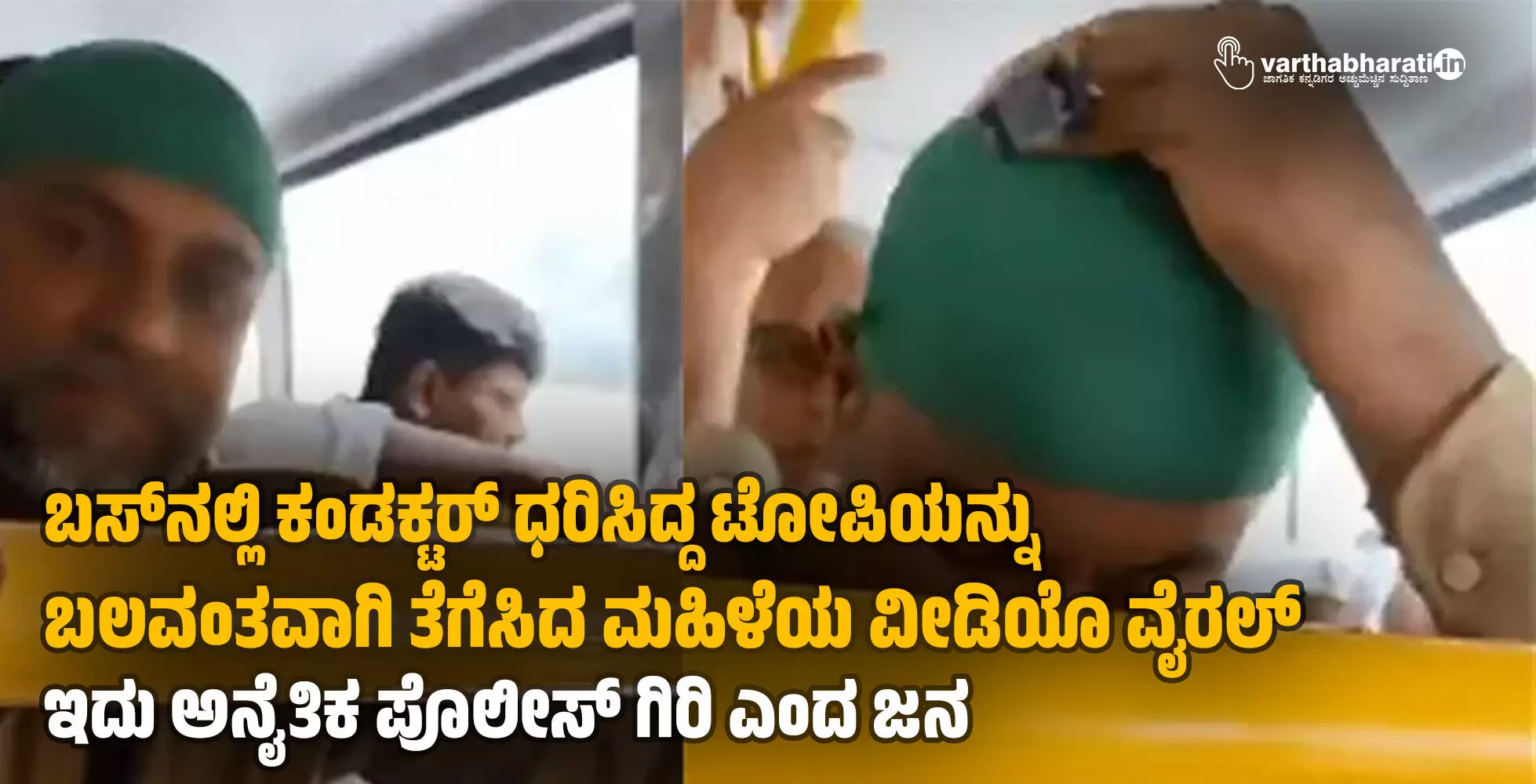 ಬಸ್ನಲ್ಲಿ ಕಂಡಕ್ಟರ್ ಧರಿಸಿದ್ದ ಟೋಪಿಯನ್ನು ಬಲವಂತವಾಗಿ ತೆಗೆಸಿದ ಮಹಿಳೆಯ ವೀಡಿಯೊ ವೈರಲ್; ಇದು ಅನೈತಿಕ ಪೊಲೀಸ್ ಗಿರಿ ಎಂದ ಜನ