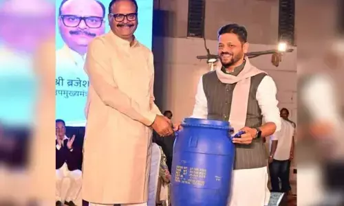 ಉತ್ತರಪ್ರದೇಶ | ಉಪ ಮುಖ್ಯಮಂತ್ರಿ ಬ್ರಜೇಶ್ ಪಾಠಕ್ಗೆ ʼನೀಲಿ ಡ್ರಮ್ʼ ಉಡುಗೊರೆ ನೀಡಿದ ಎಸ್ಪಿ ನಾಯಕ!