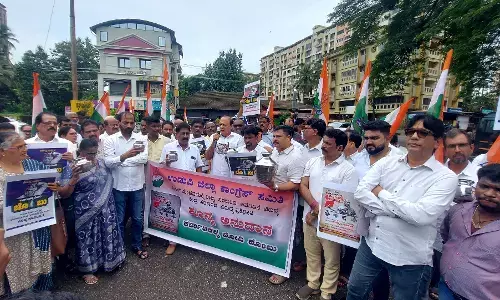 ಕೇಂದ್ರ ಬಜೆಟ್ ನಲ್ಲಿ ಕರ್ನಾಟಕದ ಅವಗಣನೆ: ಉಡುಪಿ ಕಾಂಗ್ರೆಸ್ ನಿಂದ ಚೊಂಬು ಹಿಡಿದು ಪ್ರತಿಭಟನೆ