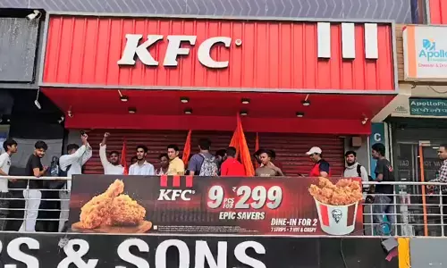 ಉತ್ತರ ಪ್ರದೇಶ | ಶ್ರಾವಣ ಮಾಸ ಹಿನ್ನೆಲೆ ಕೆಎಫ್ಸಿ, ನಝೀರ್ ಫುಡ್ಸ್ ಮಳಿಗೆಗಳನ್ನು ಬಲವಂತವಾಗಿ ಬಂದ್ ಮಾಡಿಸಿದ ಹಿಂದುತ್ವ ಸಂಘಟನೆಯ...