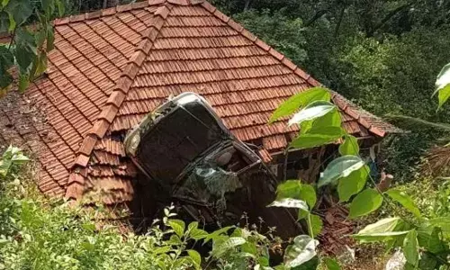 ಸುಳ್ಯ: ನಿಯಂತ್ರಣ ತಪ್ಪಿ ಮನೆಯ ಮೇಲೆ ಬಿದ್ದ ಕಾರು