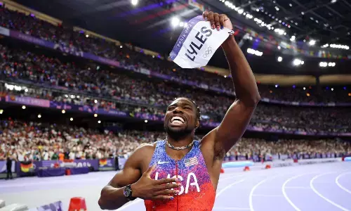 ಪ್ಯಾರಿಸ್ ಒಲಿಂಪಿಕ್ಸ್ | 100 ಮೀಟರ್ ಪುರುಷರ ಓಟದ ಸ್ಪರ್ಧೆಯಲ್ಲಿ ಕೂದಲೆಳೆಯ ಅಂತರದಲ್ಲಿ ಚಿನ್ನ ಮುಡಿಗೇರಿಸಿಕೊಂಡ ಅಮೆರಿಕದ ನೋವಾ ಲೈಲ್ಸ್