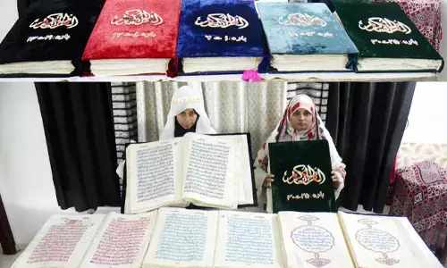 ಬಟ್ಟೆಯ ಮೇಲೆ ಸಂಪೂರ್ಣ ಕುರ್ಆನ್ ಕಸೂತಿ ಮಾಡಿದ ಸಹೋದರಿಯರು