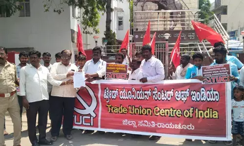 ರಾಯಚೂರು: ಕಾರ್ಮಿಕ ವಿರೋಧಿ ಕೇಂದ್ರದ ವಿರುದ್ಧ ಟಿಯುಸಿಐ ಪ್ರತಿಭಟನೆ