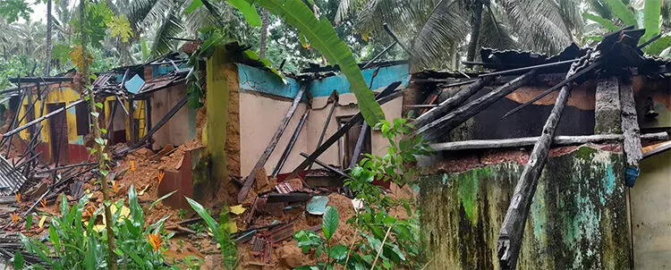 ಸೋಮೇಶ್ವರದ ಉಳ್ಳಾಲ ರೈಲ್ವೇ ನಿಲ್ದಾಣದ ಹಿಂಬದಿಯ ಶೋಭಾ ಎಂಬವರ ಮನೆ ಮಂಗಳವಾರ ರಾತ್ರಿ ಸುರಿದ ಗಾಳಿ, ಮಳೆಗೆ ಸಂಪೂರ್ಣವಾಗಿ ಹಾನಿಗೊಳಗಾಗಿದೆ. ಮನೆಯ ದುರಸ್ತಿ ನಡೆಸುವ ಸಲುವಾಗಿ ಶೋಭಾ ಅವರು ಹತ್ತಿರದ ಮನೆಯೊಂದಕ್ಕೆ ಸ್ಥಳಾಂತರಗೊಂಡಿದ್ದರು. ಘಟನೆ ನಡೆದ ಸಂದರ್ಭ ಕುಟುಂಬ ಸದಸ್ಯರು ಮನೆಯಲ್ಲಿರದ ಕಾರಣ ಪ್ರಾಣಾ ಹಾನಿ ಸಂಭವಿಸಿಲ್ಲ ಎಂದು ತಿಳಿದು ಬಂದಿದೆ.