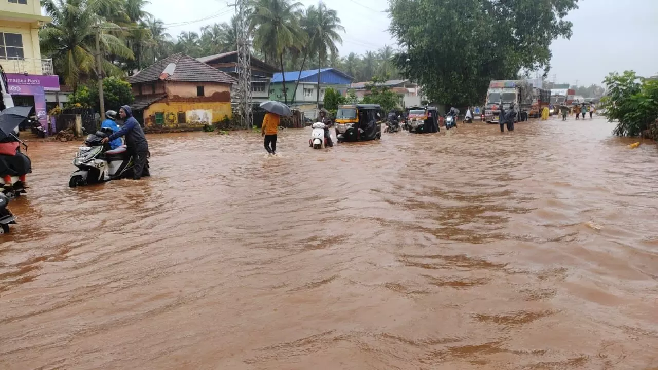 ಭಟ್ಕಳ: ಧಾರಾಕಾರ ಮಳೆಗೆ ಕೆರೆಯಂತಾದ ರಾಷ್ಟ್ರೀಯ ಹೆದ್ದಾರಿ