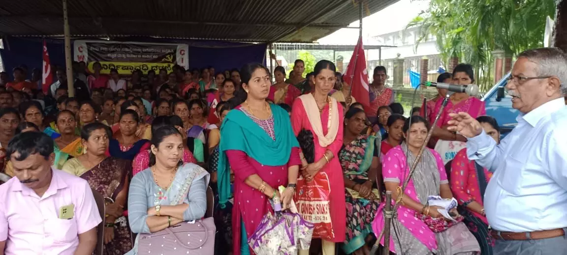 ಸಿಐಟಿಯು ಜಿಲ್ಲಾ ಪ್ರಧಾನ ಕಾರ್ಯದರ್ಶಿ ಸುರೇಶ್ ಕಲ್ಲಾಗರ ಮಾತನಾಡಿ, ಜಿಲ್ಲೆಯಲ್ಲಿ ಕೆಂಪು ಕಲ್ಲಿಗಾಗಿ ಜಿಲ್ಲಾಡಳಿತ ಗುರುತಿಸಿದ 147 ಸ್ಥಳಗಳಲ್ಲಿ ಗುಣಮಟ್ಟದ ಕೆಂಪು ಕಲ್ಲುಗಳು ಲಭ್ಯವಿಲ್ಲದ ಕಾರಣ ಪೂರೈಕೆ ಕಡಿಮೆಯಾಗಿ ಅವಶ್ಯಕತೆ ಜಾಸ್ತಿಯಾಗಿದೆ. ಈ ಮೂಲಕ ಕೆಂಪು ಕಲ್ಲಿಗೆ ದುಬಾರಿ ದರವನ್ನು ಬಡವರಿಂದ ವಸೂಲಿ ಮಾಡಲು ಜಿಲ್ಲಾಡಳಿತ ಅವಕಾಶ ಮಾಡಿದೆ. ಜಿಲ್ಲಾಡಳಿತ ಗುಣಮಟ್ಟದ ಕಲ್ಲು ಸಿಗುವ ಸ್ಥಳದಲ್ಲಿ ಕಾನೂನು ಬದ್ಧ ಪರವಾನಿಗೆ ನೀಡಿ ಕೊರತೆ ನೀಗಿಸಬೇಕು. ರಾಜಧನ ಕೇರಳ ಮಾದರಿ ಯಂತೆ ಕಡಿಮೆ ಮಾಡಬೇಕು. ಈ ಬಗ್ಗೆ ಜಿಲ್ಲಾಧಿಕಾರಿಯವರು ಜಂಟಿ ಸಭೆ ನಡೆಸಿ ಇತ್ಯರ್ಥ ಪಡಿಸಬೇಕು ಎಂದು ಆಗ್ರಹಿಸಿದರು.
