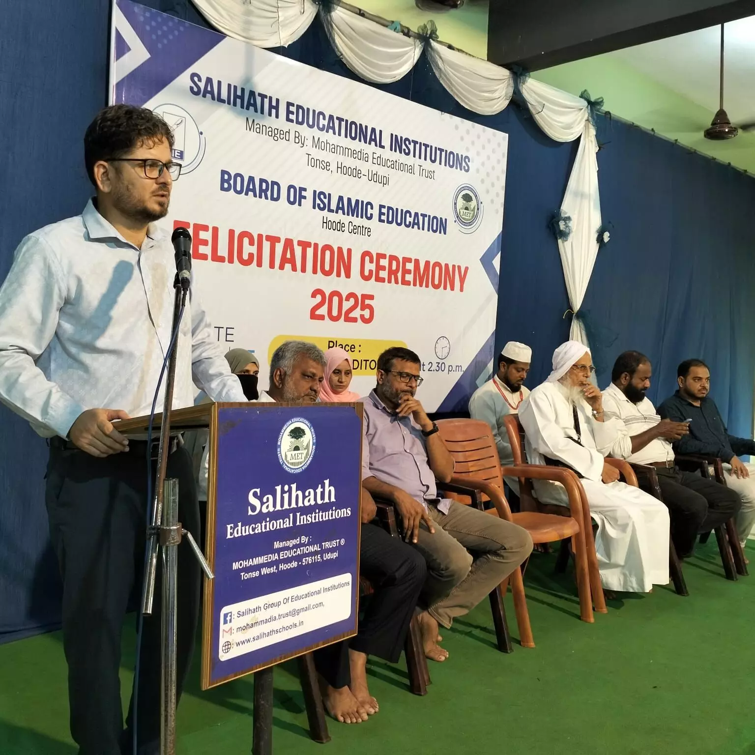 ಹೂಡೆಯ ಸಾಲಿಹಾತ್ ಶಿಕ್ಷಣ ಸಂಸ್ಥೆಯಲ್ಲಿ ಬಿಎ ವತಿಯಿಂದ ನಡೆದ ಪಬ್ಲಿಕ್ ಪರೀಕ್ಷೆಯಲ್ಲಿ ಅತ್ಯಧಿಕ ಅಂಕ ಗಳಿಸಿದ ವಿದ್ಯಾರ್ಥಿಗಳನ್ನುದ್ದೇಶಿಸಿ ಅವರು ಮಾತನಾಡುತಿದ್ದರು.