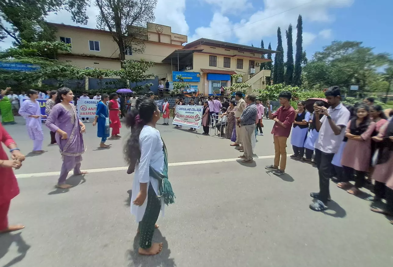 ಗಮನ ಸೆಳೆದ ಬೀದಿ ನಾಟಕ: ಕ್ರಾಸ್ಲ್ಯಾಂಡ್ ಕಾಲೇಜಿನ ರಾಷ್ಟ್ರೀಯ ಸೇವಾ ಯೋಜನೆ, ರೆಡ್ಕ್ರಾಸ್ ಘಟಕ, ಕಲಾ ಮತ್ತು ಸಾಹಿತ್ಯ ವೇದಿಕೆ ಹಾಗೂ ವಿದ್ಯಾರ್ಥಿ ಸಂಘಗಳ ಸದಸ್ಯರು ಮಾದಕ ವ್ಯಸನದಿಂದ ಯುವ ಜನತೆ ಹೇಗೆ ದಾರಿ ತಪ್ಪುತ್ತಾರೆ, ಅದರಿಂದ ಹೇಗೆ ಮುಕ್ತರಾಗಬಹುದು ಎನ್ನುವ ಬಗ್ಗೆ ಪ್ರದರ್ಶಿಸಿದ ಬೀದಿ ನಾಟಕ/ಮೈಮ್ ಶೋ ಸಾರ್ವಜನಿಕರ ಗಮನ ಸೆಳೆಯಿತು.