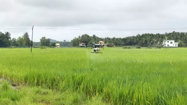 ಆತ್ಮ ಯೋಜನೆಯಡಿ ಡ್ರೋನ್ ಮೂಲಕ ಗೊಬ್ಬರ ಸಿಂಪರಣೆ ಪ್ರಾತ್ಯಕ್ಷಿಕೆ