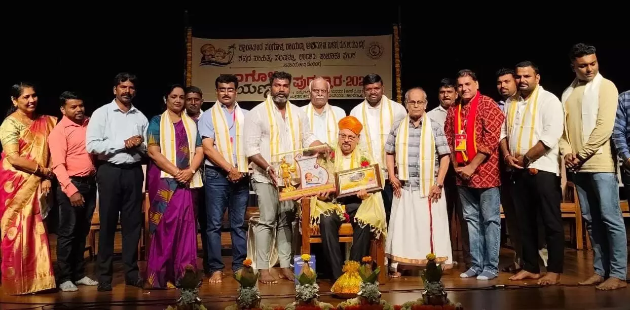 ಉಡುಪಿ, ಸೆ.24: ಕ್ರಾಂತಿವೀರ ಸಂಗೊಳ್ಳಿ ರಾಯಣ್ಣ ಅಭಿಮಾನಿ ಬಳಗ ದ.ಕ. ಉಡುಪಿ ಜಿಲ್ಲೆ, ಕನ್ನಡ ಸಾಹಿತ್ಯ ಪರಿಷತ್ ಉಡುಪಿ ತಾಲೂಕು ಘಟಕದ ಸಹಯೋಗದೊಂದಿಗೆ ಸಂಗೊಳ್ಳಿ ರಾಯಣ್ಣ ಪುರಸ್ಕಾರವನ್ನು ಮನೋವೈದ್ಯ ಹಾಗೂ ಸಾಮಾಜಿಕ ಹೋರಾಟಗಾರ ಡಾ.ಪಿ.ವಿ.ಭಂಡಾರಿ ಅವರಿಗೆ ಬುಧವಾರ ಉಡುಪಿ ಕಲಾರಂಗದ ಐವೈಸಿ ಸಭಾಂಗಣದಲ್ಲಿ ಪ್ರದಾನ ಮಾಡಲಾಯಿತು.