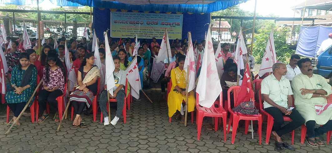 ಉಡುಪಿ, ಅ.3: ಡಿವೈಎಫ್ಐ ಪಡುಕೋಣೆ ಘಟಕ, ಉಡುಪಿ ಜಿಲ್ಲಾ ಹಂಚು ಕಾರ್ಮಿಕರ ಸಂಘ, ಕುಂದಾಪುರ ಮತ್ತು ಬೈಂದೂರು ಕಟ್ಟಡ ಮತ್ತು ಇತರ ನಿರ್ಮಾಣ ಕಾರ್ಮಿಕರ ಸಂಘ, ಅಖಿಲ ಭಾರತ ಜನವಾದಿ ಮಹಿಳಾ ಸಂಘಟನೆ, ಕರ್ನಾಟಕ ಪ್ರಾಂತ ಕೃಷಿ ಕೂಲಿಕಾರರ ಸಂಘಗಳ ನೇತೃತ್ವದಲ್ಲಿ ಕುಂದಾಪುರ ಮತ್ತು ಬೈಂದೂರು ತಾಲೂಕಿನಲ್ಲಿ ಬಸ್ ಸೌಕರ್ಯದಿಂದ ವಂಚಿತವಾಗಿರುವ ಗ್ರಾಮ ಮತ್ತು ಪ್ರದೇಶಗಳಿಗೆ ಕೆಎಸ್ಆರ್ಟಿಸಿ ಬಸ್ ಸೇವೆ ಆರಂಭಿಸಲು ಆಗ್ರಹಿಸಿ ಅನಿರ್ದಿಷ್ಠಾವಧಿ ಧರಣಿ ಸತ್ಯಾಗ್ರಹವನ್ನು ಉಡುಪಿ ಜಿಲ್ಲಾಧಿಕಾರಿ ಕಚೇರಿ ಎದುರು ಶುಕ್ರವಾರ ಹಮ್ಮಿಕೊಳ್ಳಲಾಗಿತ್ತು.