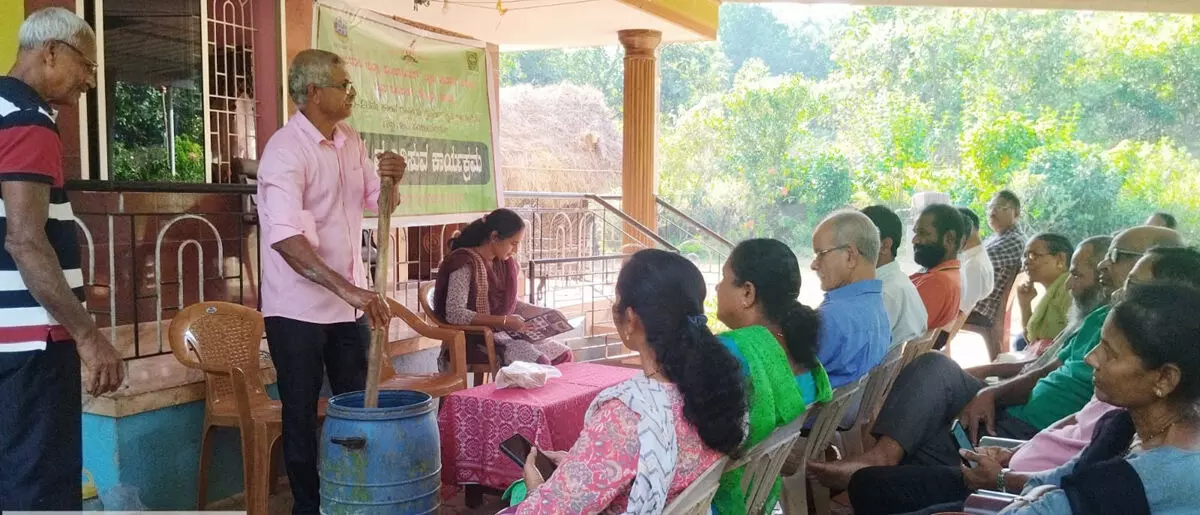 ಕಾಪು ರೈತಕೇಂದ್ರದ ವತಿಯಿಂದ ಶಿರ್ವದ ಕೃಷಿಕ ಬೆಟ್ಸಿ ಅರಾನ್ಹಾರವರ ನಿವಾಸದಲ್ಲಿ ಸೋಮವಾರ ರಾಷ್ಟ್ರೀಯ ಕೃಷಿ ಮಿಷನ್ ಯೋಜನೆಯಡಿ ಪರಿಸರದ ಕೃಷಿಕರಿಗಾಗಿ ಏರ್ಪಡಿಸಿದ ನೈಸರ್ಗಿಕ ಕೃಷಿ ಪ್ರಾತಿಕ್ಷಿಕೆ ಸಹಿತ ಮಾಹಿತಿ ನೀಡುವ ಕಾರ್ಯಕ್ರಮದಲ್ಲಿ ಅವರು ಪ್ರಧಾನ ಸಂಪನ್ಮೂಲ ವ್ಯಕ್ತಿಯಾಗಿ ಭಾಗವಹಿಸಿ ಮಾತನಾಡುತ್ತಿದ್ದರು.