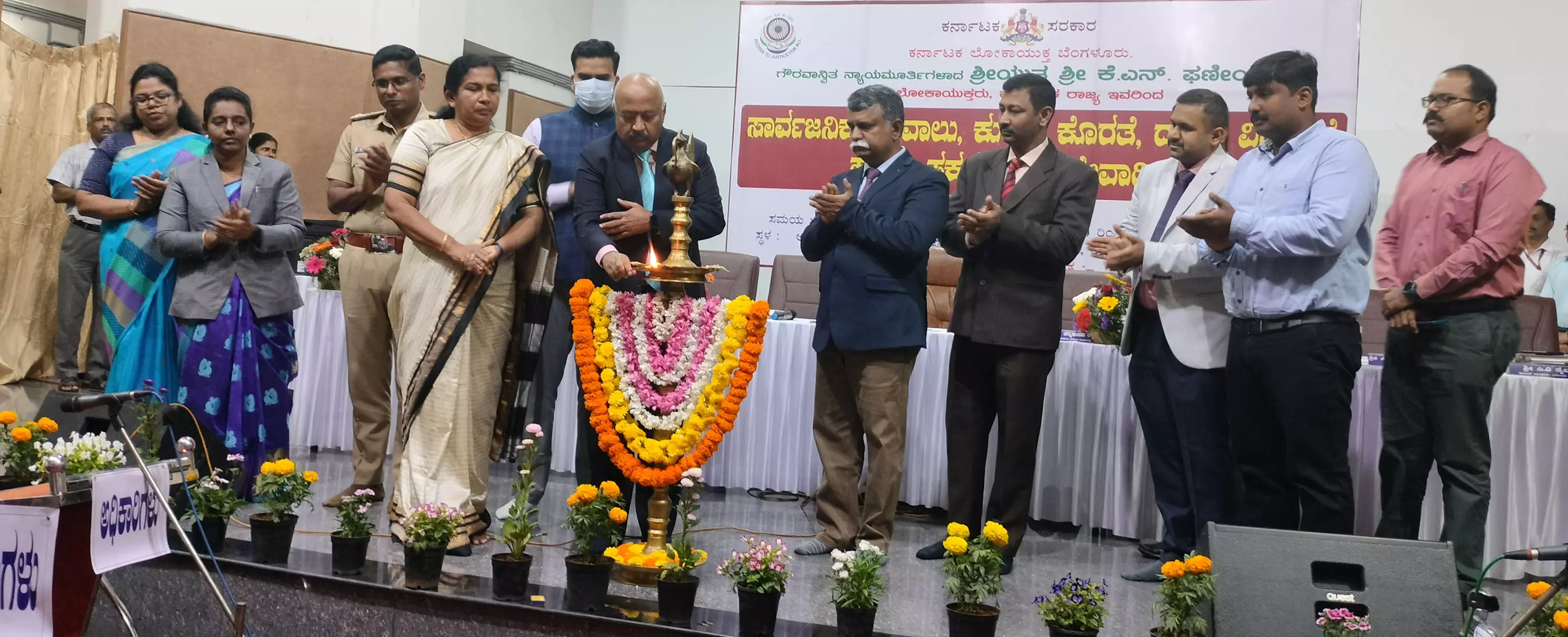 ಮಣಿಪಾಲದ ಜಿಲ್ಲಾಧಿಕಾರಿ ಕಚೇರಿ ಸಂಕೀರ್ಣದ ಅಟಲ್ ಬಿಹಾರಿ ವಾಜಪೇಯಿ ಸಭಾಂಗಣದಲ್ಲಿ ಶನಿವಾರ ಆಯೋಜಿಸ ಲಾದ ಲೋಕಾಯುಕ್ತ ದಿಂದ ಸಾರ್ವಜನಿಕ ಅಹವಾಲು, ಕುಂದುಕೊರತೆ, ದೂರು ವಿಚಾರಣೆ ಹಾಗೂ ಪ್ರಕರಣಗಳ ವಿಲೇವಾರಿ ಸಭೆಯನ್ನು ದೀಪ ಬೆಳಗಿಸುವ ಮೂಲಕ ಉದ್ಘಾಟಿಸಿ ಉಪಲೋಕಾಯುಕ್ತರು ಮಾತನಾಡುತಿದ್ದರು.