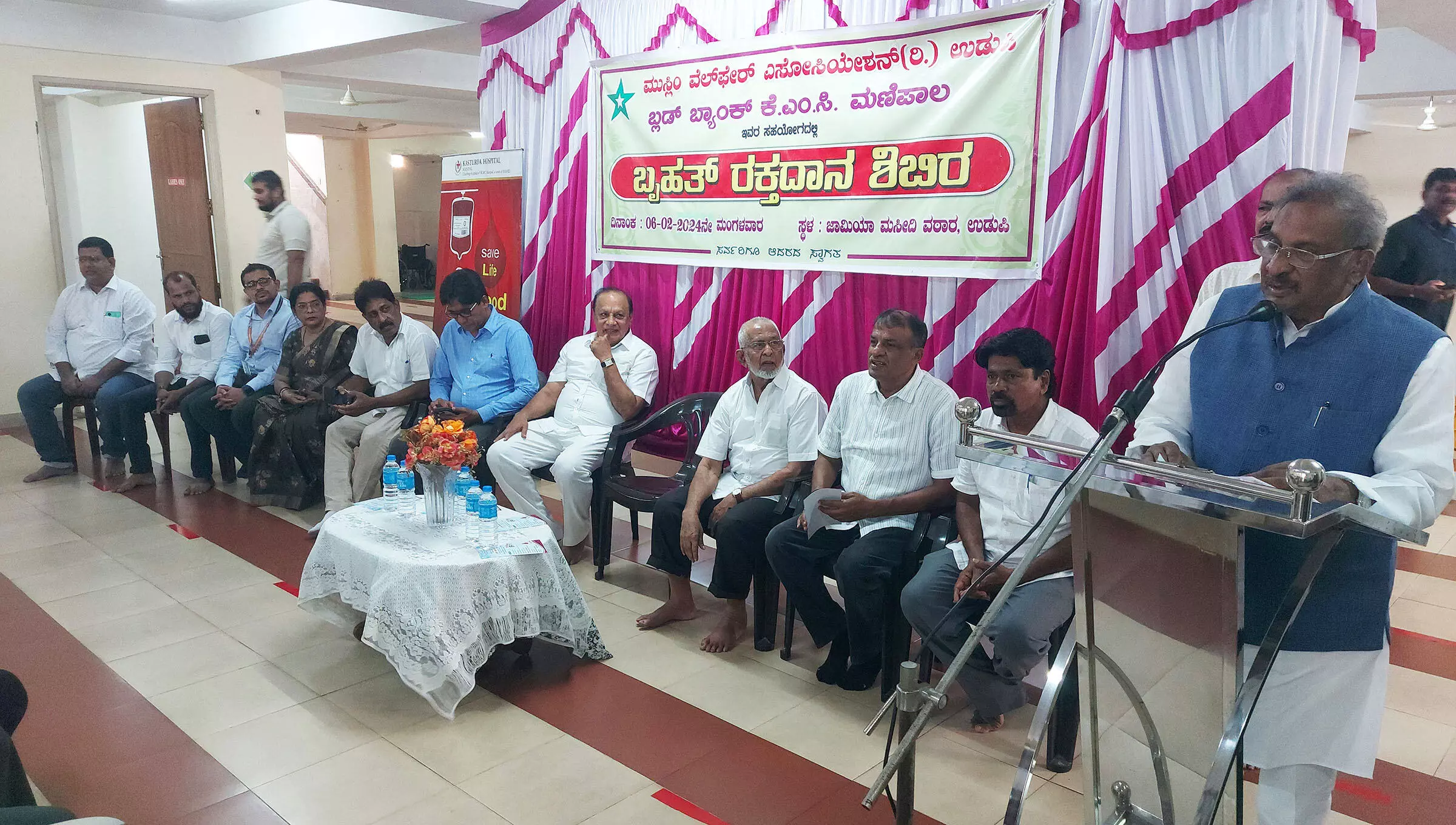 ಉಡುಪಿ ಮುಸ್ಲಿಂ ವೆಲ್ಫೇರ್ ಅಸೋಸಿಯೇಶನ್ ವತಿಯಿಂದ ಮಣಿಪಾಲ ಕೆಎಂಸಿ ಬ್ಲಡ್ ಬ್ಯಾಂಕ್ ಸಹಯೋಗದಲ್ಲಿ ಉಡುಪಿ ಜಾಮಿಯಾ ಮಸೀದಿ ಆವರಣದಲ್ಲಿ ಇಂದು ಏರ್ಪಡಿಸಲಾದ ರಕ್ತದಾನ ಶಿಬಿರದಲ್ಲಿ ಭಾಗವಹಿಸಿ ಅವರು ಮಾತನಾಡುತಿದ್ದರು.