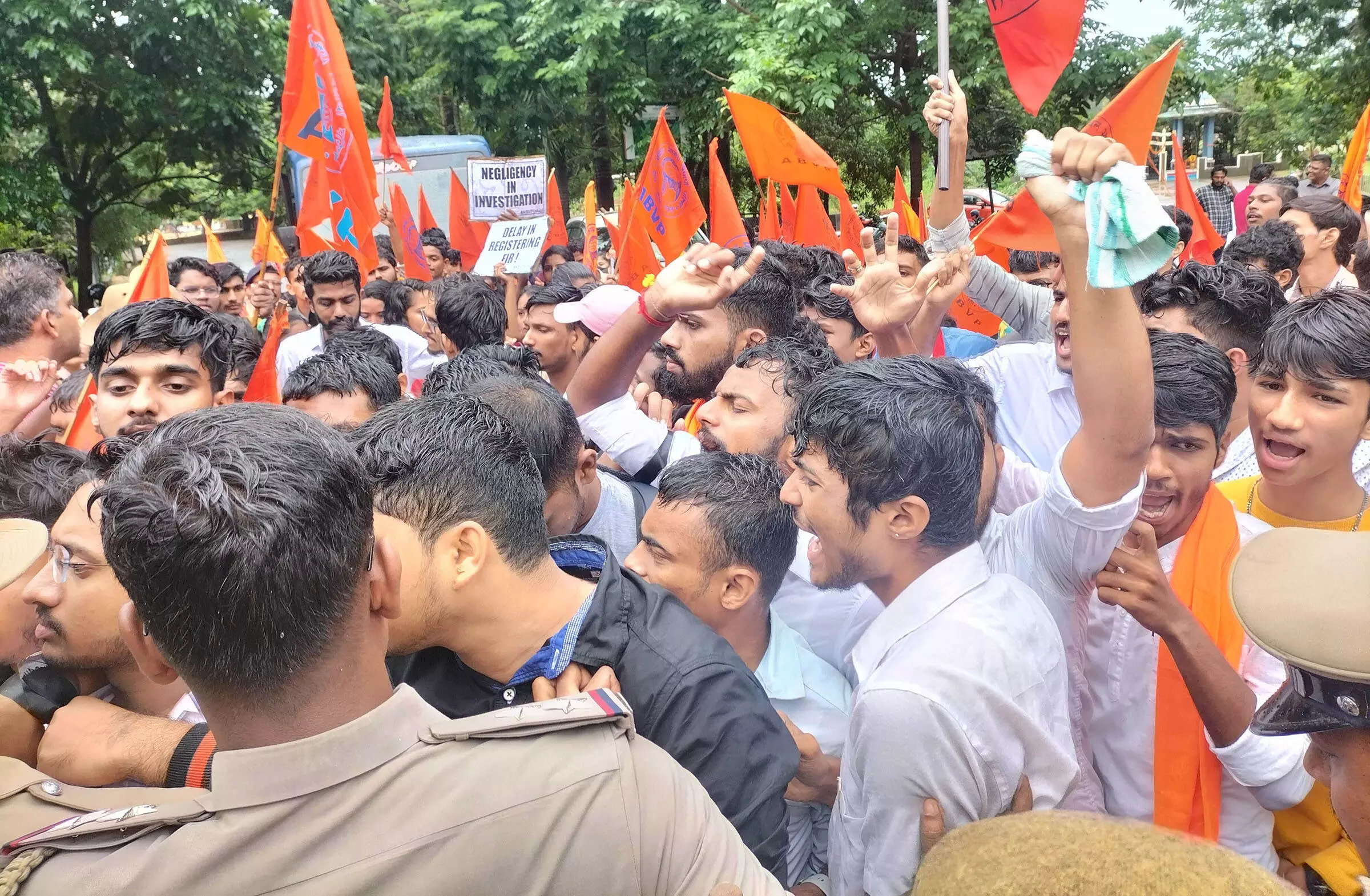 ಬಳಿಕ ಪ್ರತಿಭಟನಕಾರರು ರಸ್ತೆಯತ್ತ ನುಗ್ಗಿದ್ದು, ಈ ವೇಳೆ ಪೊಲೀಸರು ತಡೆದರು. ಈ ವೇಳೆ ಇಬ್ಬರ ಮಧ್ಯೆ ತಳ್ಳಾಟ ನಡೆಯಿತು. ಬಳಿಕ ಸ್ಥಳಕ್ಕೆ ಆಗಮಿಸಿದ ಎಸ್ಪಿ ಅಕ್ಷಯ್ ಹಾಕೇ ಪ್ರತಿಭಟನಕಾರರನ್ನು ಸಮಾಧಾನ ಪಡಿಸಿದರು.
