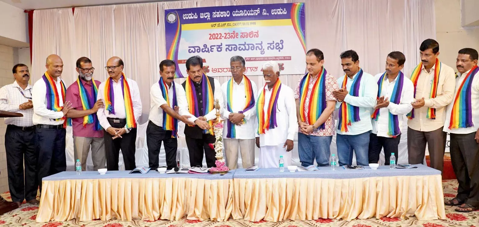 ಉಡುಪಿ ಅಜ್ಜರಕಾಡು ಪುರಭವನದ ಮಿನಿ ಹಾಲ್ನಲ್ಲಿ ಶುಕ್ರವಾರ ಜರಗಿದ ಉಡುಪಿ ಜಿಲ್ಲಾ ಸಹಕಾರ ಯೂನಿಯನ್ನ 2022-2023ನೇ ಸಾಲಿನ ವಾರ್ಷಿಕ ಸಾಮಾನ್ಯ ಸಭೆಯ ಅಧ್ಯಕ್ಷತೆ ವಹಿಸಿ ಅವರು ಮಾತನಾಡುತ್ತಿದ್ದರು. ರಾಜ್ಯ ಸರಕಾರ ಸಹಕಾರಿ ಕಾನೂನಿಗೆ ತಿದ್ದುಪಡಿಗೆ ಸಂಬಂಧಿಸಿ ಏಳು ಮಂದಿ ಸದಸ್ಯರ ಸಮಿತಿ ರಚಿಸಿದ್ದು, ಈ ಸಂಬಂಧ ಯಾವುದೇ ಸೂಚನೆ ಗಳಿದ್ದರೂ ಸಹಕಾರಿಗಳು ಯೂನಿಯನ್ಗೆ ಬರೆದು ಕಳುಹಿಸಬಹುದು. ಮುಂದೆ ಅದನ್ನು ಕ್ರೋಢಿಕ ರೀಸಿ ರಾಜ್ಯ ಸರಕಾರಕ್ಕೆ ಸಲ್ಲಿಸಲಾಗುವುದು ಎಂದರು.