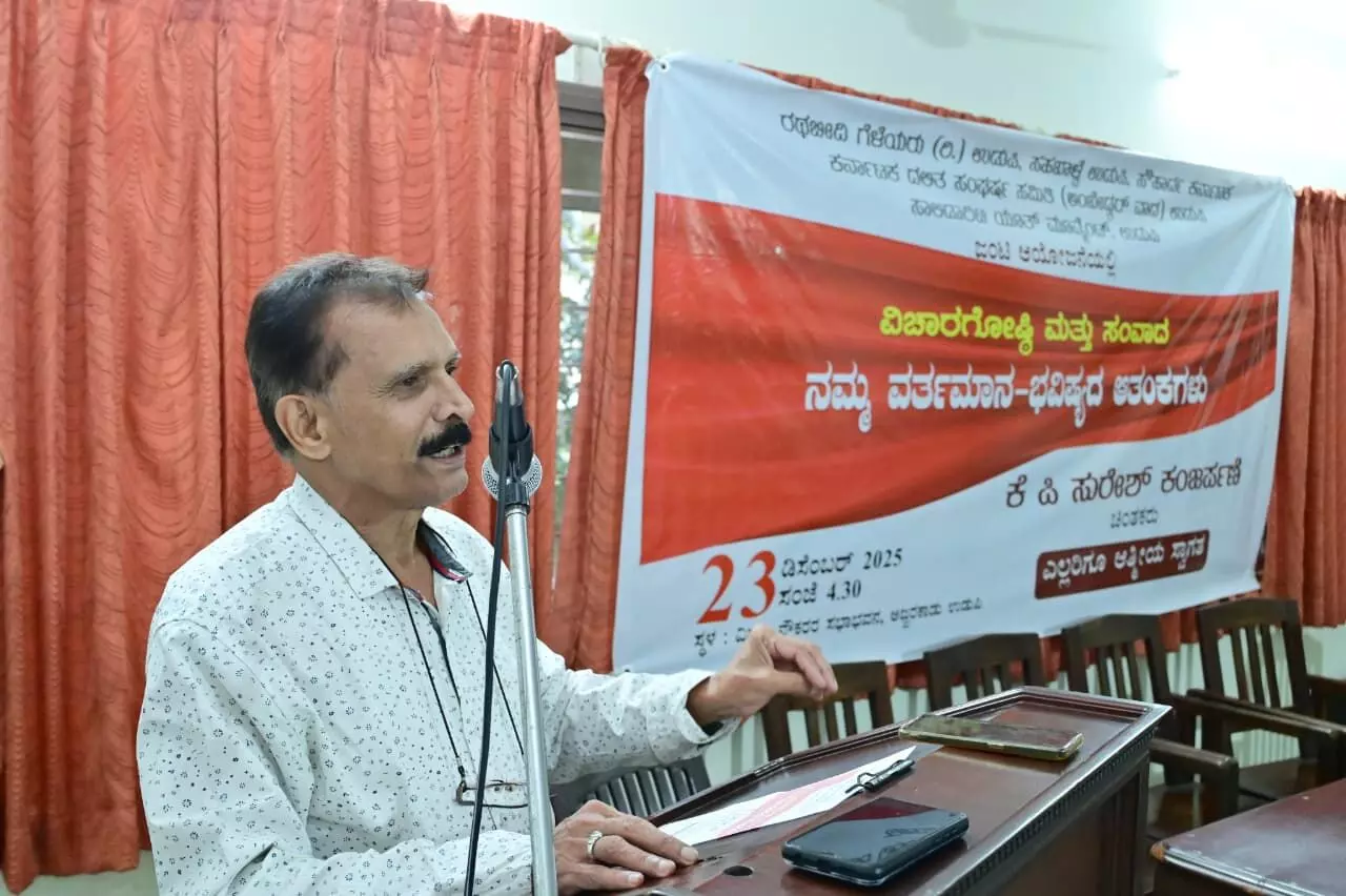ದಕ್ಷಿಣ ಕನ್ನಡ ಉಡುಪಿ ಜಿಲ್ಲೆಯಲ್ಲಿ ಭೂಸುಧಾರಣೆಯ ಭಾಗವಾಗಿ ಭೂಮಿ ಪಡೆದುಕೊಂಡವರ ಮಕ್ಕಳು ಮತ್ತು ಮೊಮ್ಮಕ್ಕಳೇ ಹಿಂದುತ್ವದ ಭಾಗ ವಾಗಿದ್ದಾರೆ. ಫ್ಯಾಸಿಸಂ ಆಡಳಿತವು ಮೊದಲು ಮಾನವ ಹಕ್ಕುಗಳನ್ನು ಧಮಿನಿ ಸುವ ಮೂಲಕ ಶುರುವಾಗುತ್ತದೆ. ದೇಶವನ್ನು ಮುಕ್ಕಿ ತಿನ್ನುವ ಭ್ರಷ್ಟಾಚಾರ, ಮತಗಳ್ಳತನ, ಬ್ಯಾಂಕ್ ಮುಳುಗಿಸು ವುದು ಇವರಿಗೆ ಮುಖ್ಯ ಆಗುವುದಿಲ್ಲ. ಈ ದೇಶದಲ್ಲಿ ಧರ್ಮ, ಜಾತಿ, ಜನಾಂಗದ ಹೆಸರಿನಲ್ಲಿ ಕಲ್ಪಿತ ಶತ್ರುವನ್ನು ಸೃಷ್ಠಿಸಲಾಗುತ್ತಿದೆ ಎಂದರು.