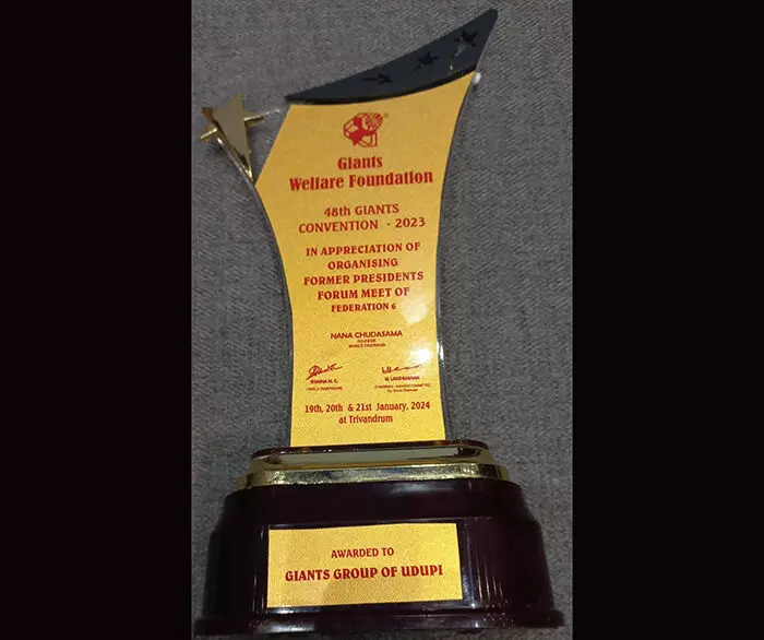 ತಿರುವನಂತಪುರದಲ್ಲಿ ನಡೆದ ಅಂತರಾಷ್ಟ್ರೀಯ ಸಮ್ಮೇಳನದಲ್ಲಿ ಜಯಂಟ್ಸ್ ಉಡುಪಿಗೆ ಪ್ರಶಸ್ತಿ