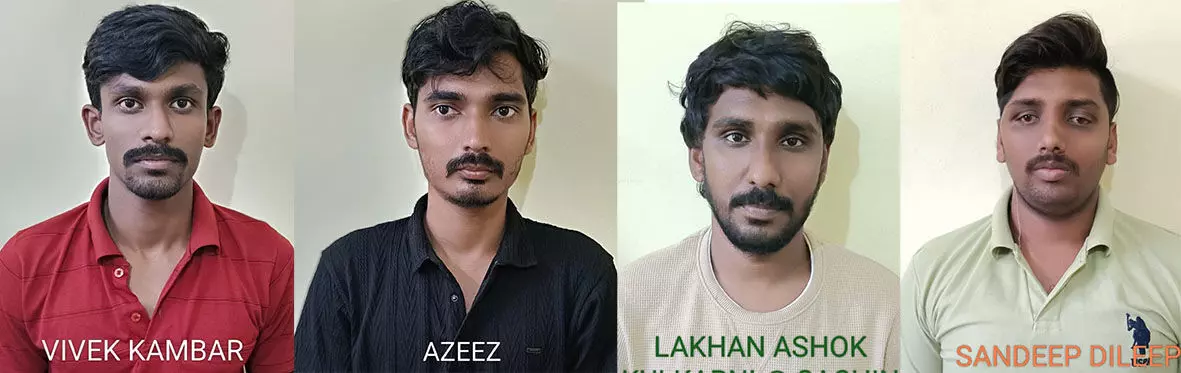 ಮಹಾರಾಷ್ಟ್ರ ಮೂಲದ ಸೊಲ್ಲಾಪುರ ಭಾಗದ ನಿವಾಸಿಗಳಾದ ಲಖನ್ ಕುಲಕರ್ಣಿ(31), ಸಂದೀಪ್ ಲವಟೆ(25), ವಿವೇಕ್ ಕುಂಬಾರ(26), ಅಜೀಜ್ ಯಾನೆ ಚೋಟೆ(28) ಬಂಧಿತ ಆರೋಪಿಗಳು.