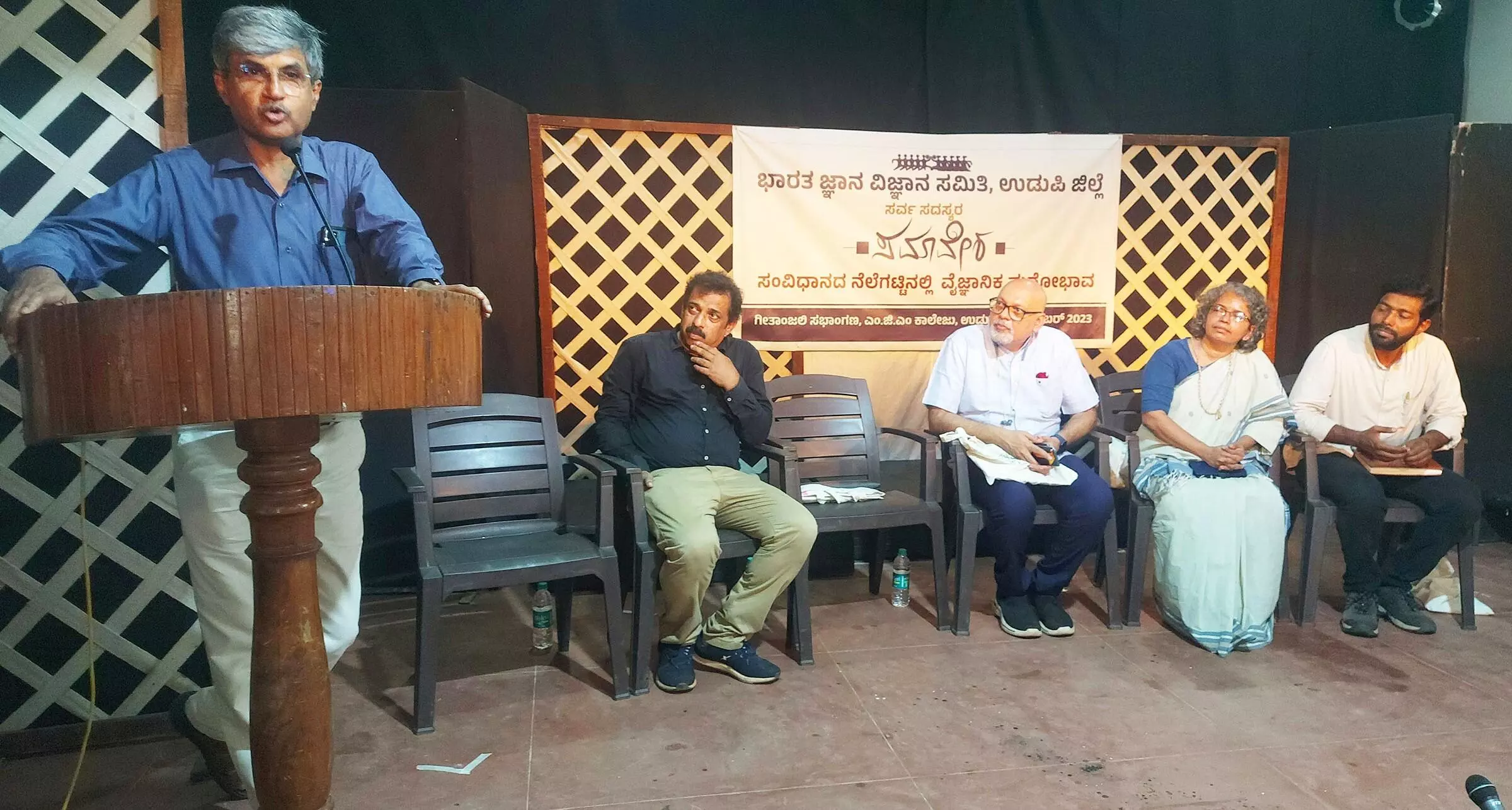ಭಾರತ ಜ್ಞಾನ ವಿಜ್ಞಾನ ಸಮಿತಿ ಉಡುಪಿ ಜಿಲ್ಲೆ ಇದರ ವತಿಯಿಂದ ರವಿವಾರ ಉಡುಪಿ ಎಂಜಿಎಂ ಕಾಲೇಜಿನ ಗೀತಾಂಜಲಿ ಸಭಾಂಗಣದಲ್ಲಿ ಆಯೋಜಿಸ ಲಾದ ಸಂವಿಧಾನದ ನೆಲೆಗಟ್ಟಿನಲ್ಲಿ ವೈಜ್ಞಾನಿಕ ಮನೋಭಾವ ಕುರಿತ ಸರ್ವ ಸದಸ್ಯರ ಸಮಾವೇಶದಲ್ಲಿ ಅವರು ವಿಶೇಷ ಉಪನ್ಯಾಸ ನೀಡಿದರು.