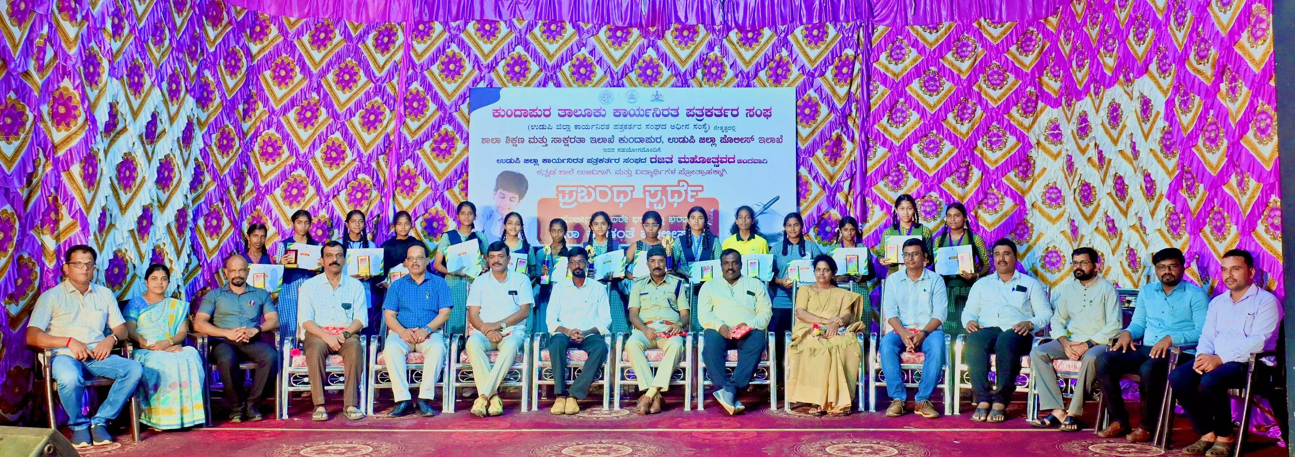ಕುಂದಾಪುರ ತಾಲೂಕು ಕಾರ್ಯನಿರತ ಪತ್ರಕರ್ತರ ಸಂಘದ ವತಿಯಿಂದ ಕುಂದಾಪುರ ಶಾಲಾ ಶಿಕ್ಷಣ ಮತ್ತು ಸಾಕ್ಷರತಾ ಇಲಾಖೆ ಮತ್ತು ಉಡುಪಿ ಜಿಲ್ಲಾ ಪೊಲೀಸ್ ಇಲಾಖೆ ಸಹಯೋಗದೊಂದಿಗೆ ಉಡುಪಿ ಜಿಲ್ಲಾ ಕಾರ್ಯನಿರತ ಪತ್ರಕರ್ತರ ಸಂಘದ ರಜತ ಮಹೋತ್ಸವದ ಅಂಗವಾಗಿ ಕನ್ನಡ ಶಾಲೆಗಳ ಉಳಿವಿಗಾಗಿ ಮತ್ತು ವಿದ್ಯಾರ್ಥಿಗಳ ಪ್ರೋತ್ಸಾಹಕ್ಕಾಗಿ ಸರಕಾರಿ ಪ್ರೌಢಶಾಲಾ ವಿದ್ಯಾರ್ಥಿಗಳಿಗೆ ಆಯೋಜಿಸಿದ ‘ನಾ ಕಂಡಂತೆ ಪೊಲೀಸ್’ ಪ್ರಬಂಧ ಸ್ಪರ್ಧೆಯ ವಿಜೇತರಿಗೆ ಶನಿವಾರ ಕುಂದಾಪುರ ಬೋರ್ಡ್ ಹೈಸ್ಕೂಲಿನ ಕಲಾ ಮಂದಿರದಲ್ಲಿ ಬಹುಮಾನ ವಿತರಿಸಿ ಅವರು ಮಾತನಾಡುತ್ತಿದ್ದರು.
