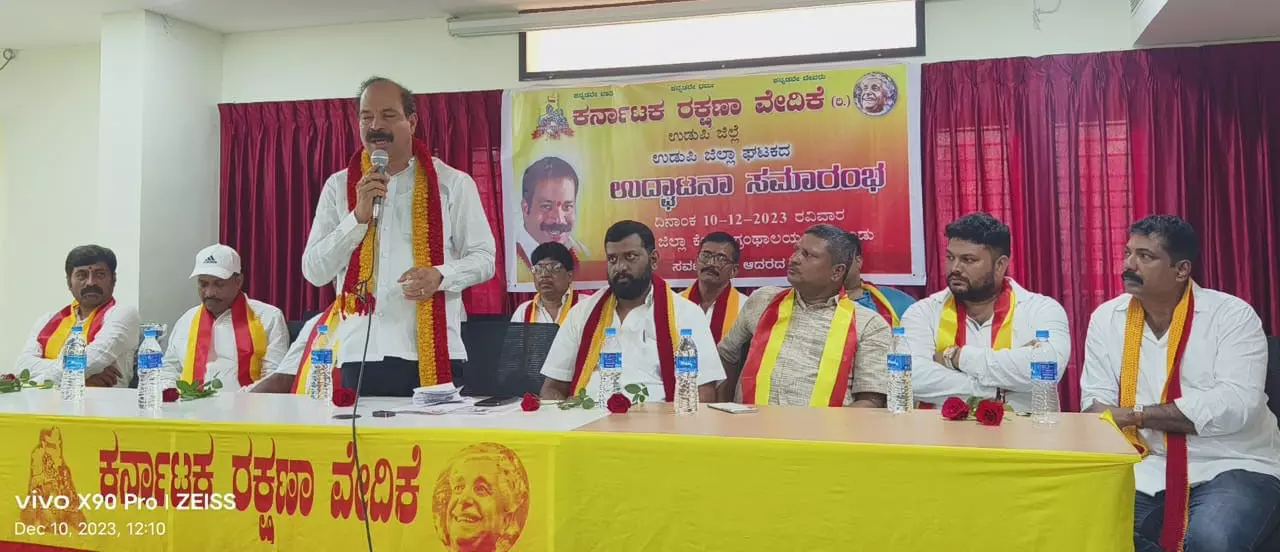 ಉಡುಪಿ, ಡಿ.10: ಕರ್ನಾಟಕ ರಕ್ಷಣಾ ವೇದಿಕೆ ಉಡುಪಿ ಜಿಲ್ಲಾ ಘಟಕದ ಉದ್ಘಾಟನಾ ಸಮಾರಂಭ ನಗರದ ಅಜ್ಜರಕಾಡು ಜಿಲ್ಲಾ ಕೇಂದ್ರ ಗ್ರಂಥಾಲಯದ ಸಭಾಂಗಣದಲ್ಲಿ ರವಿವಾರ ನಡೆಯಿತು.