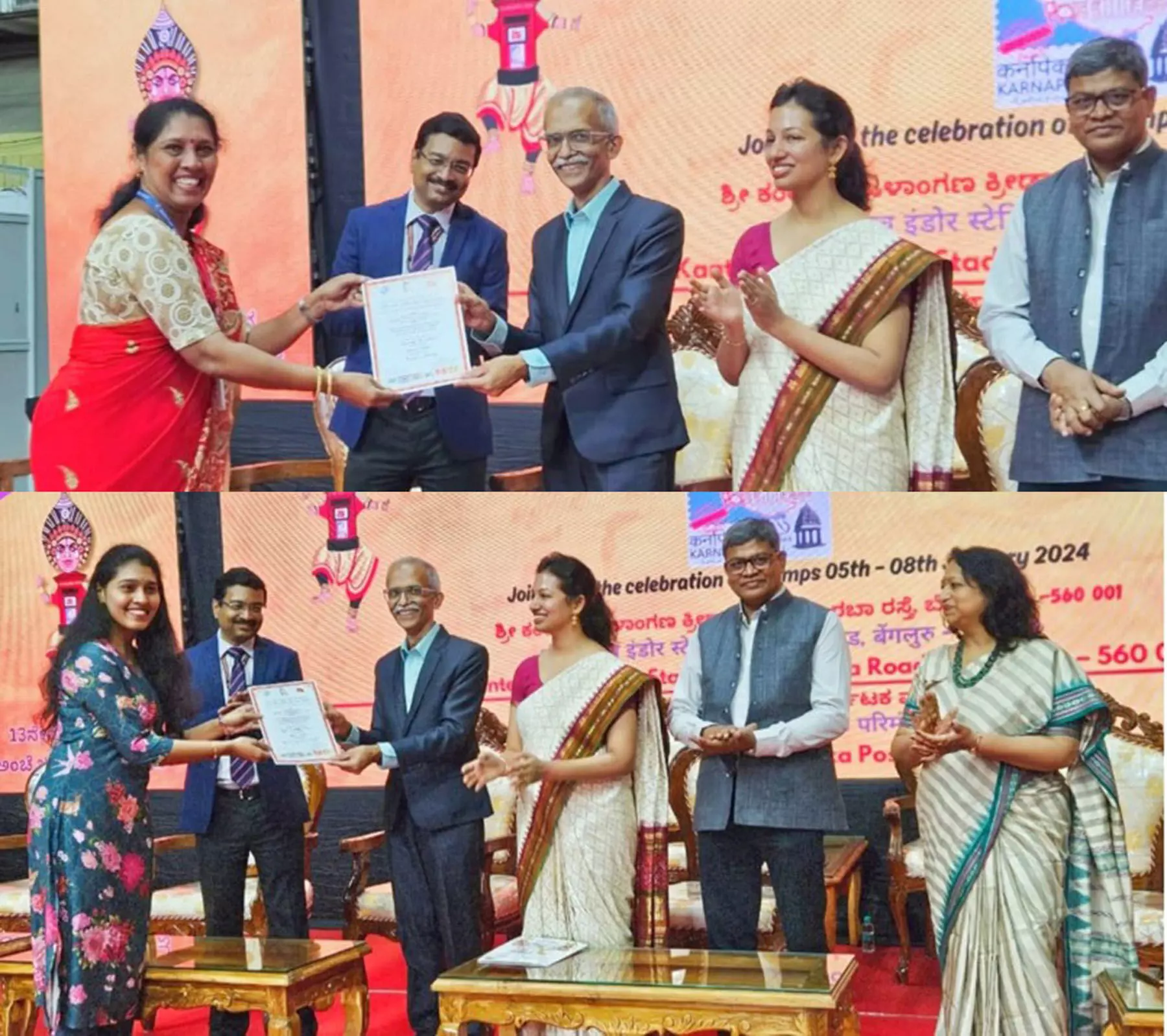 ಉಡುಪಿ, ಜ.12: ಬೆಂಗಳೂರಿನ ಕಂಠೀರವ ಒಳಾಂಗಣ ಕ್ರೀಡಾಂಗಣ ದಲ್ಲಿ ನಡೆದ ರಾಜ್ಯ ಮಟ್ಟದ ಅಂಚೆ ಚೀಟಿ ಪ್ರದರ್ಶನ ‘ಕರ್ನಾಪೆಕ್ಸ್ 2024’ ರಲ್ಲಿ ಉಡುಪಿ ಅಂಚೆ ವಿಭಾಗದ ಉದ್ಯೋಗಿ ಪೂರ್ಣಿಮಾ ಜನಾರ್ದನ್ ಅವರ ಸಂಗ್ರಹಣೆ ‘ಸ್ಪೆಷಲ್ ನ್ಯಾಷನಲ್ ಆ್ಯಂಡ್ ಇಂಟರ್ನ್ಯಾಷನಲ್ ಡೇಸ್’ ಮತ್ತು ಪ್ರಜ್ಞಾ ಜನಾರ್ದನ್ ಕೊಡವೂರು ಇವರ ಸಂಗ್ರಹದ ‘ಆರ್ಮಿ ಪೋಸ್ಟಲ್ ಕವರ್’ಗೆ ಕಂಚಿನ ಪದಕದ ಪುರಸ್ಕಾರ ದೊರೆತಿದೆ.