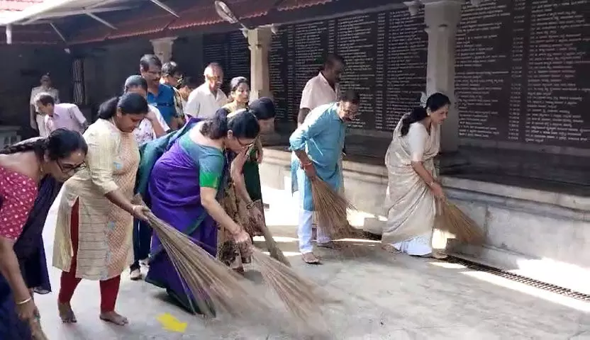 ಉಡುಪಿ, ಜ.18: ಅಯೋಧ್ಯೆ ರಾಮಮಂದಿರದಲ್ಲಿ ಶ್ರೀರಾಮನ ಪ್ರಾಣ ಪ್ರತಿಷ್ಠೆಯ ಮಂಗಳ ಕಾರ್ಯದ ನಿಮಿತ್ತ ತೀರ್ಥ ಕ್ಷೇತ್ರಗಳನ್ನು ಸ್ವಚ್ಛಗೊಳಿಸ ಬೇಕೆಂಬ ಪ್ರಧಾನ ಮಂತ್ರಿ ನರೇಂದ್ರ ಮೋದಿ ನೀಡಿದ ಕರೆಯಂತೆ ಕೇಂದ್ರ ಸಚಿವೆ ಶೋಭಾ ಕರಂದ್ಲಾಜೆ ನೇತೃತ್ವದಲ್ಲಿ ಗುರುವಾರ ಬನ್ನಂಜೆ ಶ್ರೀಮಹಾ ಲಿಂಗೇಶ್ವರ ದೇವಸ್ಥಾನದ ಪ್ರಾಂಗಣವನ್ನು ಸ್ವಚ್ಛಗೊಳಿಸಲಾಯಿತು.