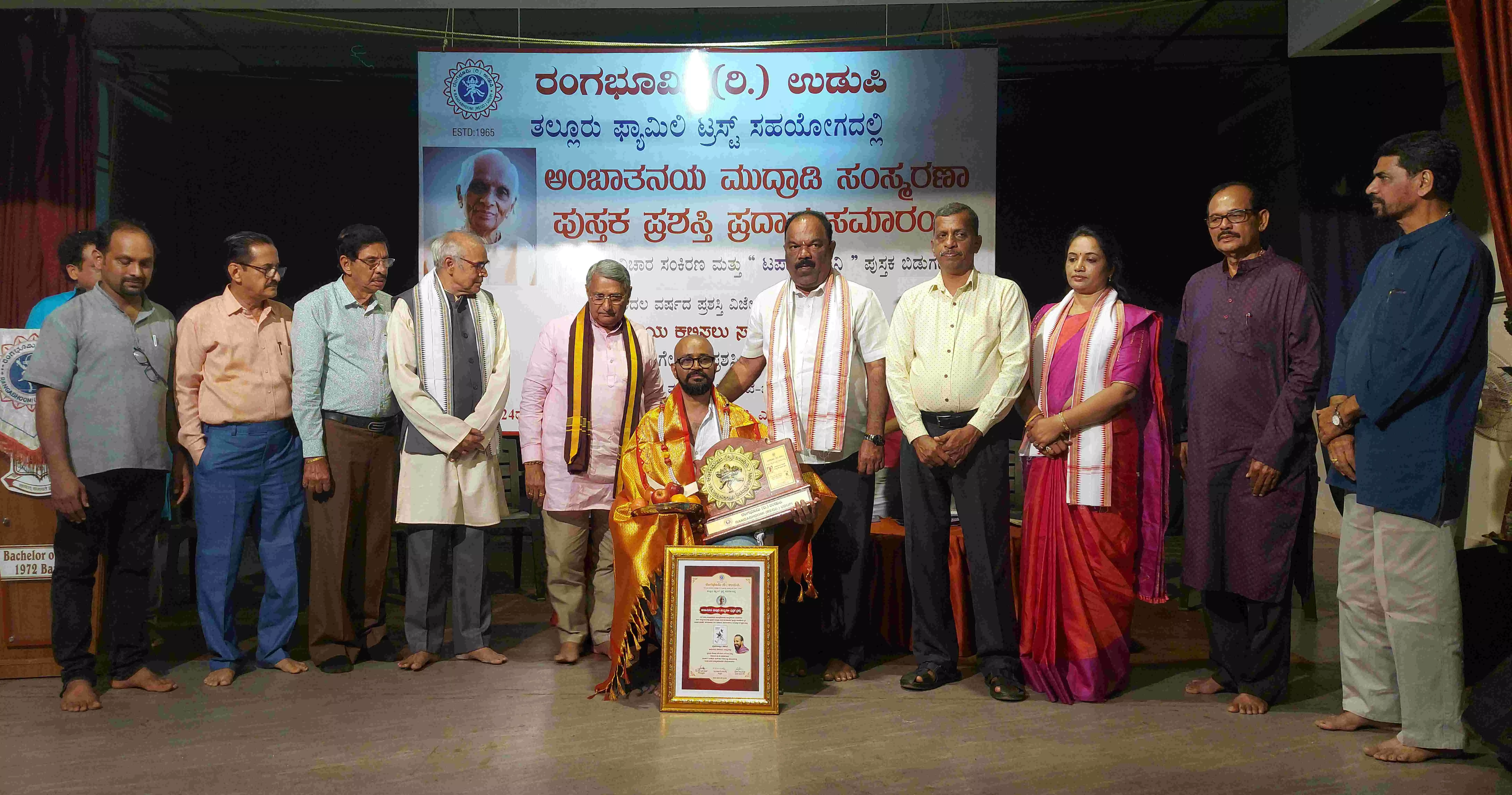 ಉಡುಪಿ, ಜ.28: ರಂಗಭೂಮಿ ಉಡುಪಿ ವತಿಯಿಂದ ತಲ್ಲೂರು ಫ್ಯಾಮಿಲಿ ಟ್ರಸ್ಟ್ ಸಹಯೋಗದಲ್ಲಿ ಉಡುಪಿ ಎಂಜಿಎಂ ಕಾಲೇಜಿನ ನೂತನ ರವೀಂದ್ರ ಮಂಟಪದಲ್ಲಿ ರವಿವಾರ ನಡೆದ ಸಮಾರಂಭದಲ್ಲಿ ಅಂಬಾತನಯ ಮುದ್ರಾಡಿ ಸಂಸ್ಮರಣಾ ಪುಸ್ತಕ ಪ್ರಶಸ್ತಿಯನ್ನು ಲೇಖಕ ಮೌನೇಶ ಬಡಿಗೇರರಿಗೆ ಪ್ರದಾನ ಮಾಡಲಾಯಿತು.