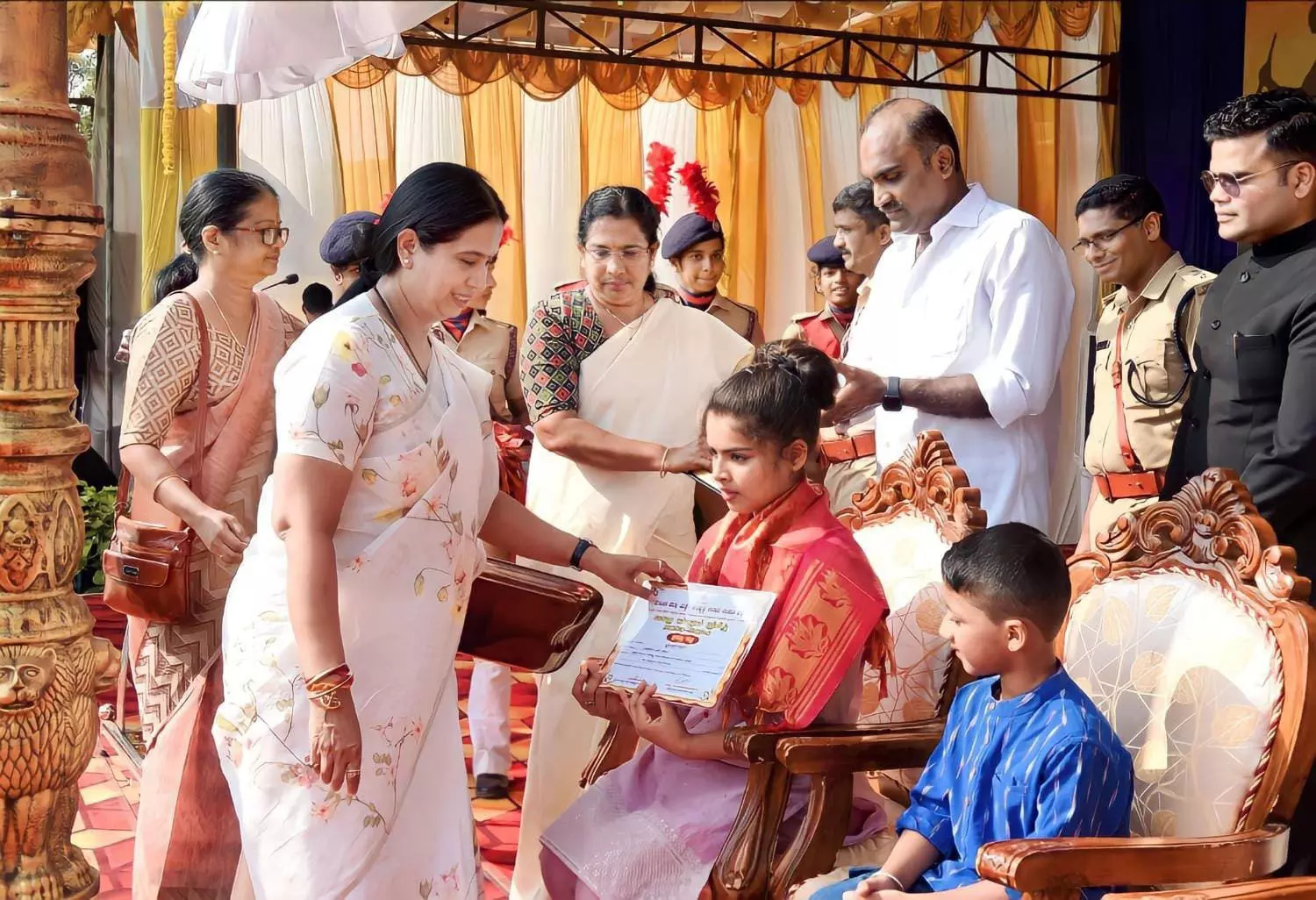 ಜ26ರಂದು ಉಡುಪಿ ಜಿಲ್ಲಾಡಳಿತ ವತಿಯಿಂದ ನಡೆದ ಗಣರಾಜ್ಯೋತ್ಸವ ಕಾರ್ಯಕ್ರಮದಲ್ಲಿ ಮಹಿಳಾ ಮತ್ತು ಮಕ್ಕಳ ಅಭಿ ವೃದ್ಧಿ, ವಿಕಲಚೇತನರ ಹಾಗೂ ಹಿರಿಯ ನಾಗರೀಕರ ಸಬಲೀಕರಣ ಸಚಿವರು ಹಾಗೂ ಉಡುಪಿ ಜಿಲ್ಲಾ ಉಸ್ತುವಾರಿ ಸಚಿವೆ ಲಕ್ಷ್ಮೀ ಹೆಬ್ಬಾಳ್ಕರ್ ಪ್ರಶಸ್ತಿ ಪ್ರದಾನ ಮಾಡಿದರು.