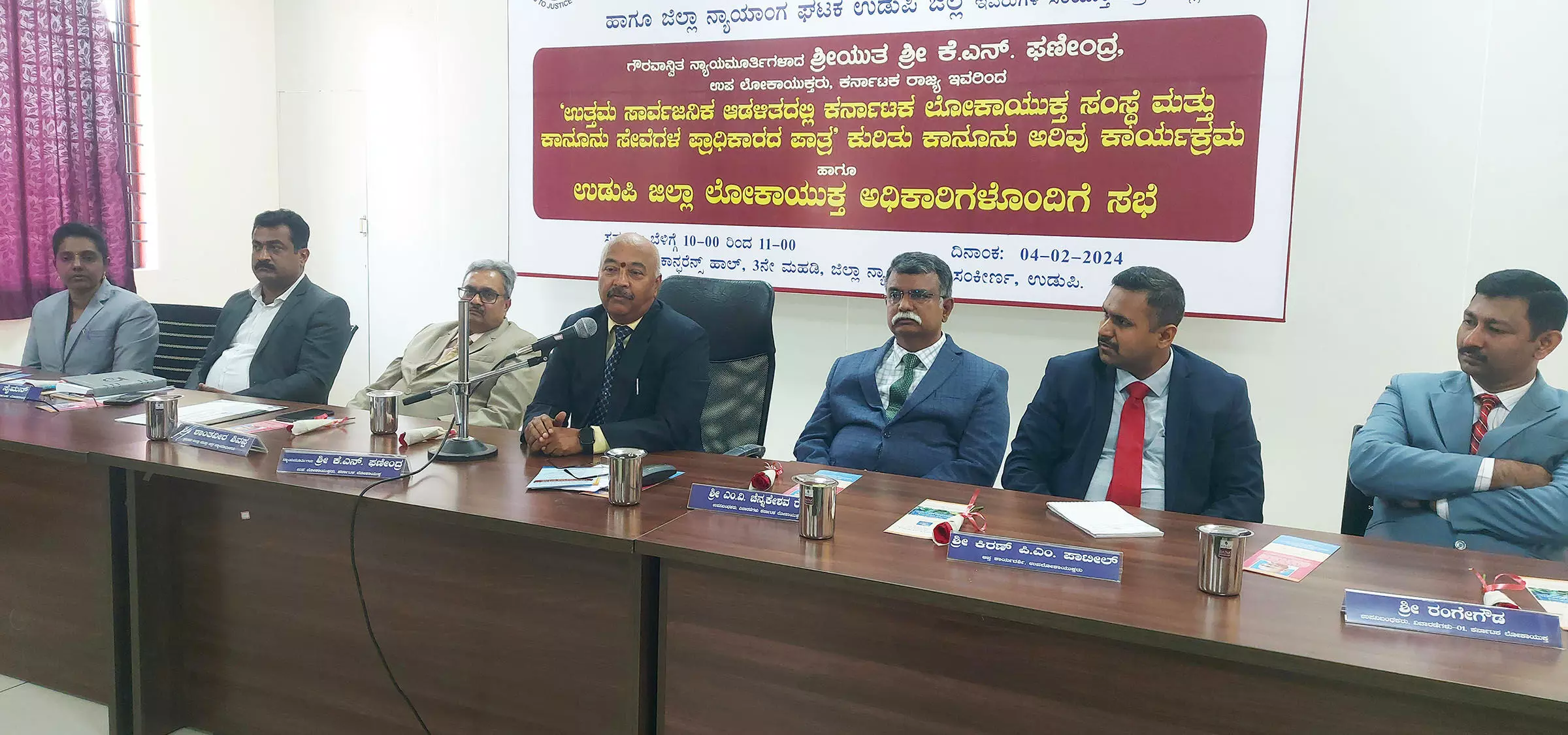 ಅಧ್ಯಕ್ಷತೆಯನ್ನು ಉಡುಪಿ ಪ್ರಧಾನ ಜಿಲ್ಲಾ ಮತ್ತು ಸತ್ರ ನ್ಯಾಯಾಧೀಶ ಶಾಂತವೀರ ಶಿವಪ್ಪವಹಿಸಿದ್ದರು. ರಾಜ್ಯ ಲೋಕಾ ಯುಕ್ತ ವಿಚಾರಣೆಗಳ ಉಪ ನಿಬಂಧಕ ಎಂ.ವಿ.ಚೆನ್ನಕೇಶವ ರೆಡ್ಡಿ, ಲೋಕಾಯುಕ್ತ ವಿಚಾರಣೆ ಉಪನಿಬಂಧಕ ರಂಗೇಗೌಡ, ಉಪ ಲೋಕಾಯುಕ್ತರ ಆಪ್ತ ಕಾರ್ಯದರ್ಶಿ ಕಿರಣ್ ಪಿ.ಎಂ. ಪಾಟೀಲ್, ಲೋಕಾಯುಕ್ತ ಮಂಗಳೂರು ವಿಭಾಗದ ಅಧೀಕ್ಷಕ ಸಿ.ಎ.ಸೈಮನ್, ನ್ಯಾಯಾಧೀಶರುಗಳು ಉಪಸ್ಥಿತರಿದ್ದರು.