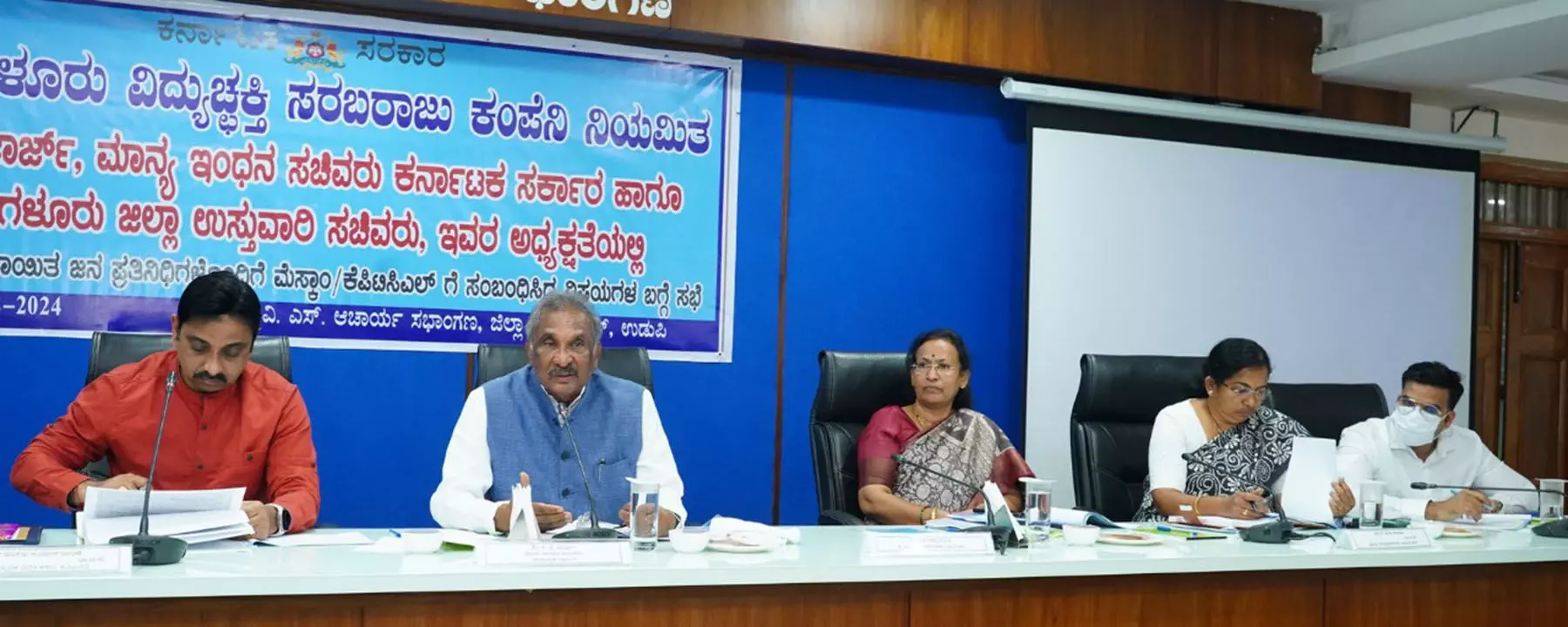 ಮಣಿಪಾಲದಲ್ಲಿರುವ ಜಿಪಂನ ಡಾ.ವಿ.ಎಸ್.ಆಚಾರ್ಯ ಸಭಾಂಗಣದಲ್ಲಿ ಮಂಗಳವಾರ ಕರೆಯಲಾದ ಮೆಸ್ಕಾಂ ಹಾಗೂ ಕೆ.ಪಿ.ಸಿ.ಟಿ.ಎಲ್ನ ಪ್ರಗತಿ ಪರೀಶಿಲನಾ ಸಭೆಯ ಅಧ್ಯಕ್ಷತೆ ವಹಿಸಿ ಅವರು ಮಾತನಾಡುತ್ತಿದ್ದರು.