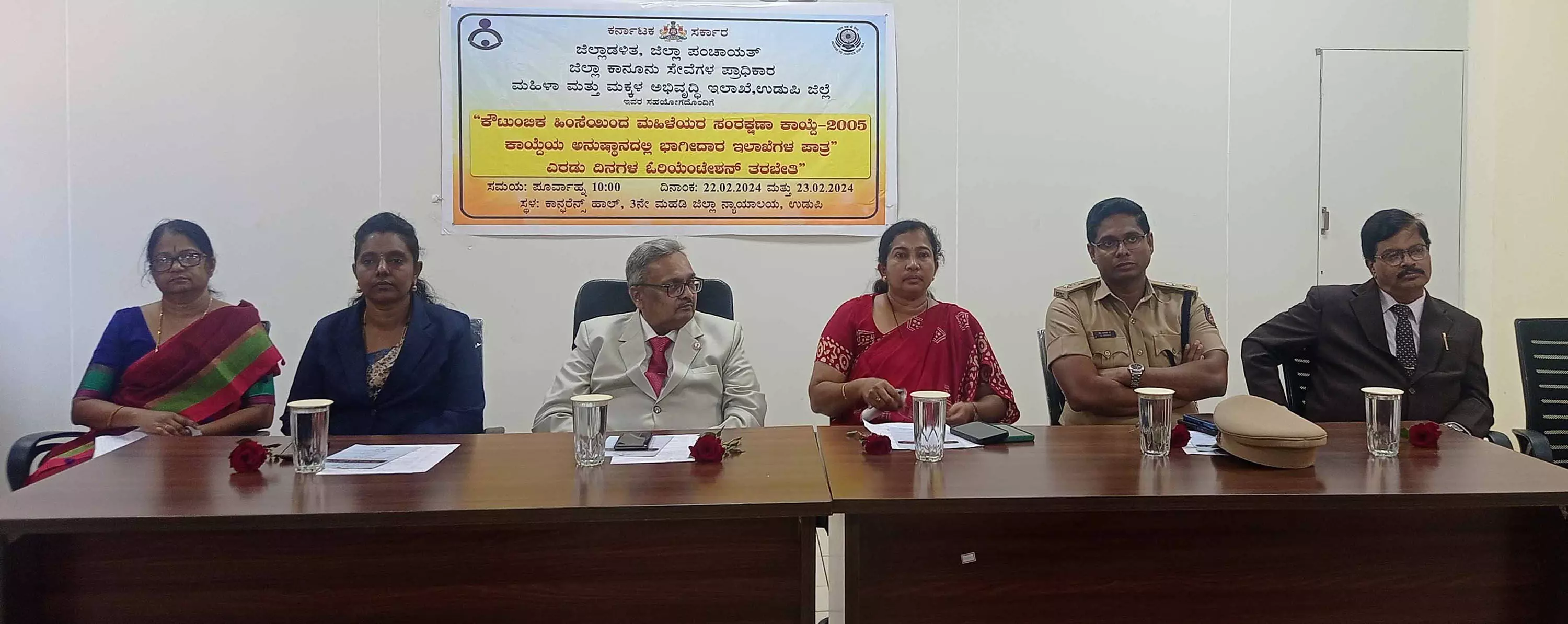 ಉಡುಪಿಯ ನಗರದ ಜಿಲ್ಲಾ ನ್ಯಾಯಾಲಯದ ಕಾನ್ಫರೆನ್ಸ್ ಹಾಲ್ನಲ್ಲಿ ಗುರುವಾರ ಜಿಲ್ಲಾಡಳಿತ, ಜಿಲ್ಲಾ ಪಂಚಾಯತ್, ಜಿಲ್ಲಾ ಕಾನೂನು ಸೇವೆಗಳ ಪ್ರಾಧಿಕಾರ ಮತ್ತು ಮಹಿಳಾ ಮತ್ತು ಮಕ್ಕಳ ಅಭಿವೃದ್ಧಿ ಇಲಾಖೆ ಉಡುಪಿ ಜಿಲ್ಲೆ ಇವರ ಸಹಯೋಗದೊಂದಿಗೆ ಆಯೋಜಿಸಲಾದ ಕೌಟುಂಬಿಕ ಹಿಂಸೆಯಿಂದ ಮಹಿಳೆಯರ ಸಂರಕ್ಷಣಾ ಕಾಯ್ದೆ-2005ರ ಅನುಷ್ಠಾನದಲ್ಲಿ ಭಾಗೀದಾರ ಇಲಾಖೆಗಳ ಪಾತ್ರ ಕುರಿತು ಓರಿಯೆಂಟೇಶನ್ ತರಬೇತಿ ಕಾರ್ಯಕ್ರಮವನ್ನು ಉದ್ಘಾಟಿಸಿ ಅವರು ಮಾತನಾಡುತ್ತಿದ್ದರು.