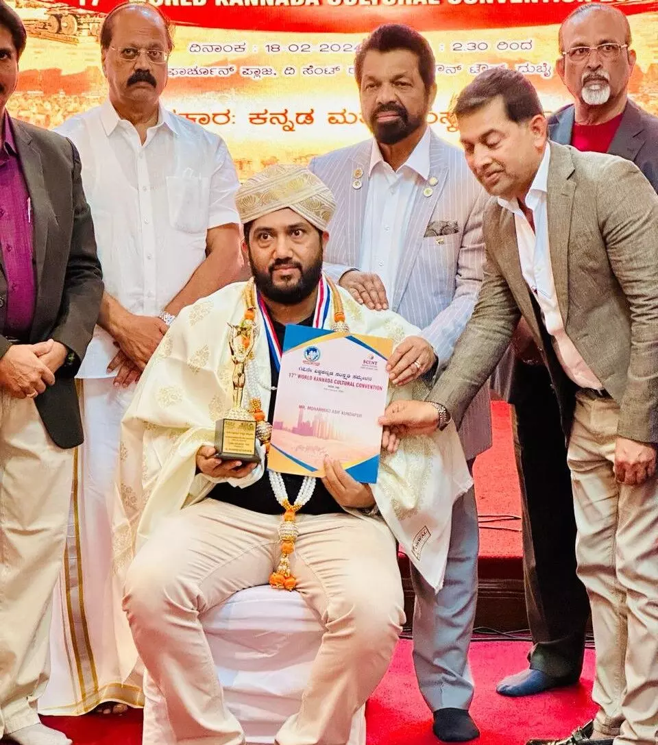 ಕುಂದಾಪುರ, ಫೆ.23: ಸೆಂಟ್ ಸಾಂಸ್ಕೃತಿಕ ಸಂಸ್ಥೆ ದುಬೈ ಮತ್ತು ಅಂತಾರಾಷ್ಟ್ರೀಯ ಸಾಂಸ್ಕೃತಿಕ ಸೌರಭ ಪರಿಷತ್ (ಇಂಡಿ) ಮಂಗಳೂರು ಇವರ ಸಂಯುಕ್ತ ಆಶ್ರಯದಲ್ಲಿ 17ನೇ ವಿಶ್ವ ಕನ್ನಡ ಸಂಸ್ಕೃತಿ ಸಮ್ಮೇಳನದ ಎರಡನೇ ದಿನದ ಕಾರ್ಯಕ್ರಮದಲ್ಲಿ ಸಮಾಜ ಸೇವೆ, ಶಿಕ್ಷಣ, ಬಡ ಹೆಣ್ಣು ಮಕ್ಕಳ ಉಚಿತ ಮದುವೆ ಮುಂತಾದ ಕ್ಷೇತ್ರಗಳಲ್ಲಿ ಸಲ್ಲಿಸಿರುವ ಸೇವೆಯನ್ನು ಪರಿಗಣಿಸಿ ಕುಂದಾಪುರದ ಮೊಹಮ್ಮದ್ ಆಸೀಫ್ ಅವರಿಗೆ 2024ನೇ ಸಾಲಿನ ವಿಶ್ವ ಮಾನ್ಯ ಪ್ರಶಸ್ತಿ ನೀಡಿ ಗೌರವಿಸಲಾಯಿತು.