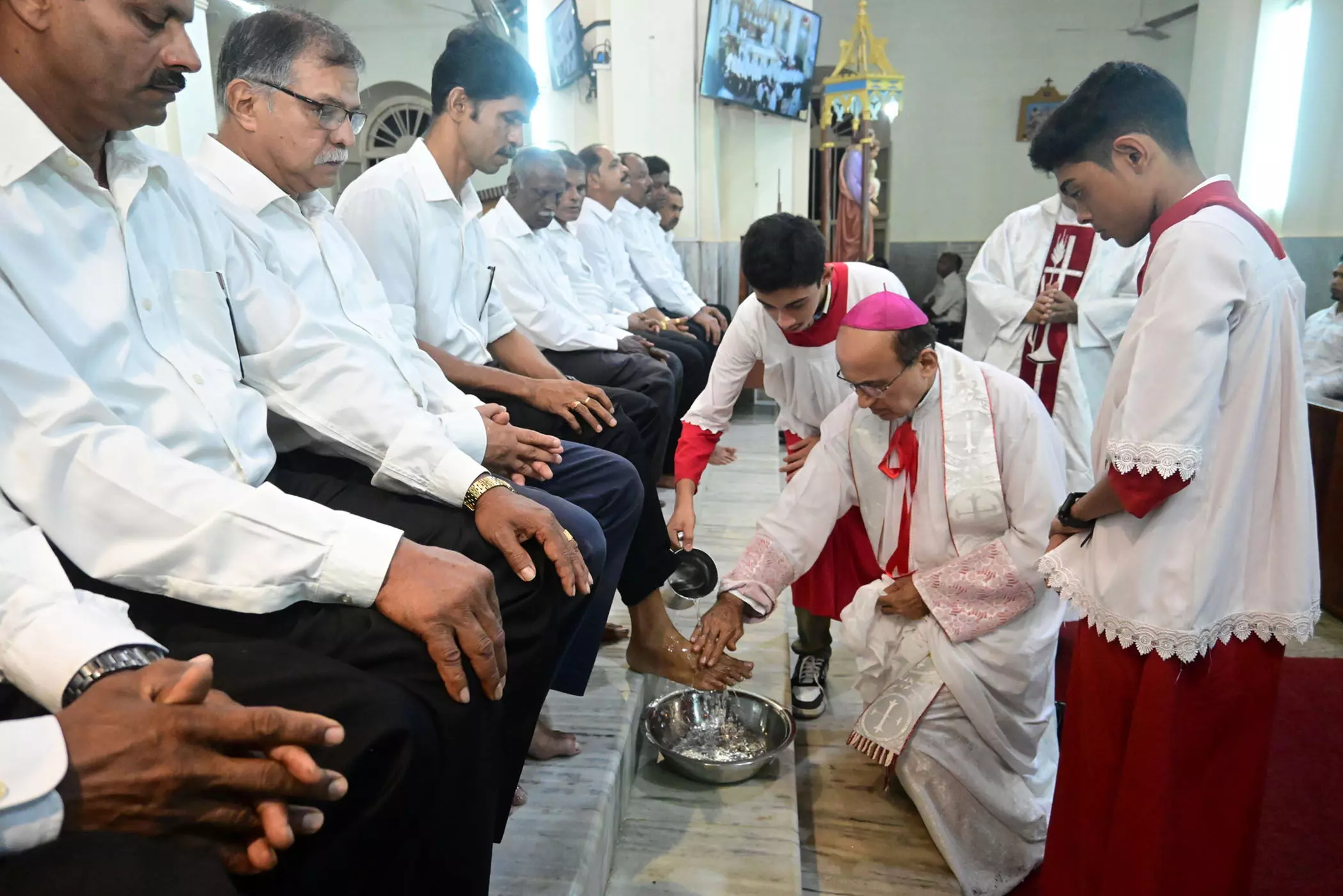 ಧರ್ಮಾಧ್ಯಕ್ಷರು 12 ಮಂದಿ ಪ್ರೇಷಿತರ (ವಿಶ್ವಾಸಿಗಳು) ಪಾದಗಳನ್ನು ತೊಳೆಯುವ ಮೂಲಕ ಏಸುಕ್ರಿಸ್ತರು ಜಗತ್ತಿಗೆ ಸಾರಿದ ದೀನತೆ ಹಾಗೂ ಪ್ರೀತಿಯ ಸಂದೇಶವನ್ನು ನೀಡಿದರು.