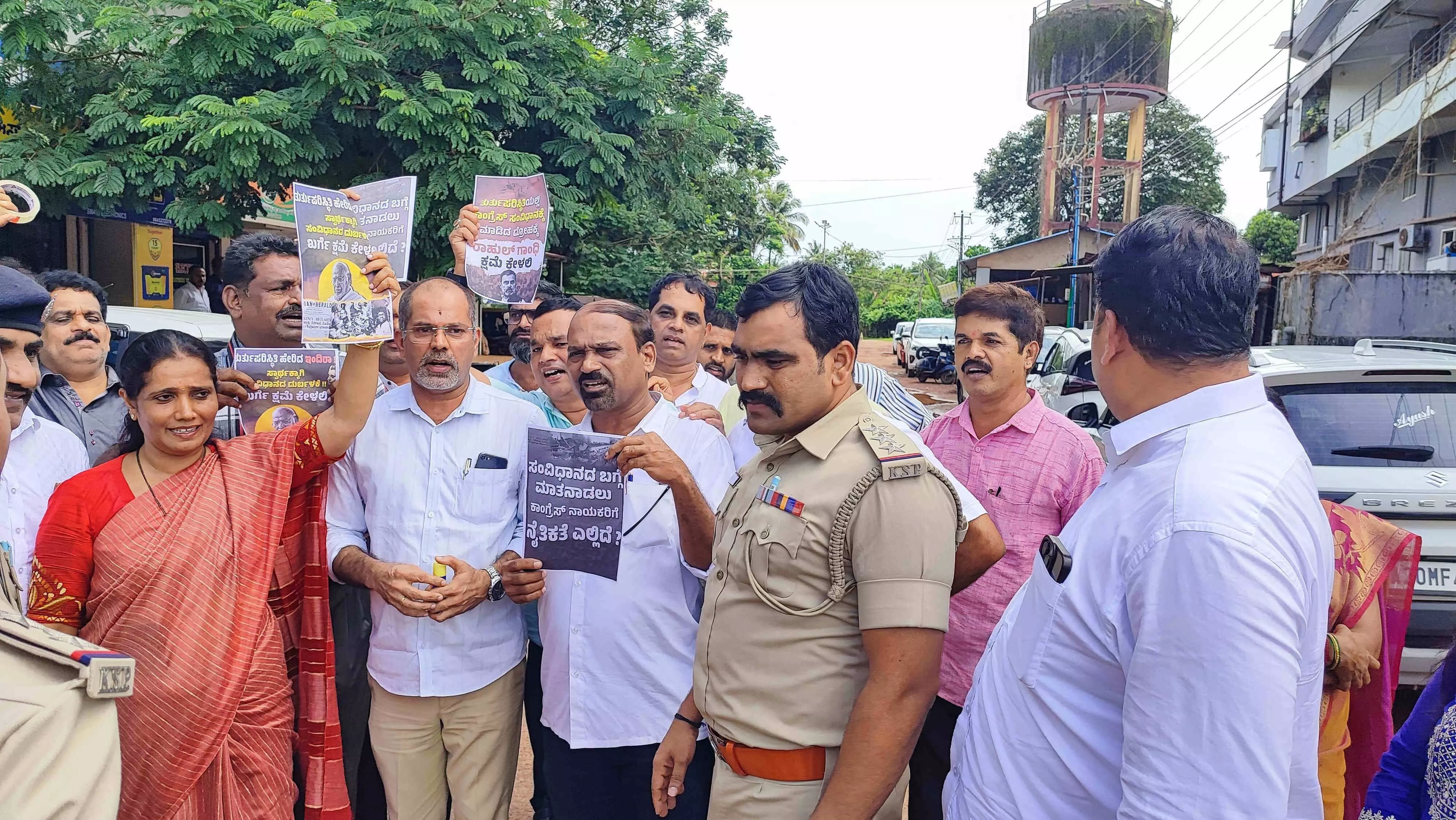 ಕಾಂಗ್ರೆಸ್ ಕಚೇರಿಯಲ್ಲಿ ಪೋಸ್ಟರ್ ಅಂಟಿಸಲು ಯತ್ನ: ಬಿಜೆಪಿ ಮುಖಂಡರನ್ನು ತಡೆದ ಪೊಲೀಸರು
