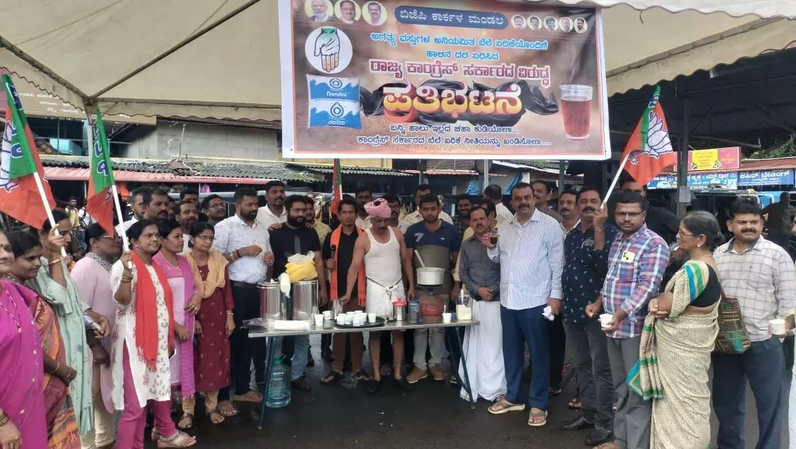 ಕಾರ್ಕಳ : ಕರ್ನಾಟಕದ ಕಾಂಗ್ರೆಸ್ ಸರಕಾರ ಹಾಲಿನ ಬೆಲೆ ಏರಿಕೆ ಮಾಡಿರುವುದನ್ನು ಖಂಡಿಸಿ ಕಾರ್ಕಳ ಬಿಜೆಪಿ ಯುವ ಮೋರ್ಚಾ ಆಶ್ರಯದಲ್ಲಿ ಕಾರ್ಕಳ ಬಸ್ ಸ್ಟ್ಯಾಂಡ್ ವಠಾರದಲ್ಲಿ ಬ್ಲ್ಯಾಕ್ ಟೀ ಪ್ರತಿಭಟನೆ ನಡೆಸಿದರು
