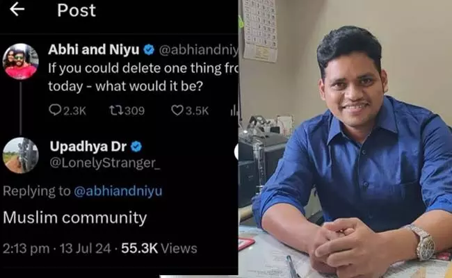 ಲ್ಯಾಪ್ರೋಸ್ಕೋಪಿ ಶಸ್ತ್ರ ಚಿಕಿತ್ಸಾ ತಜ್ಞ ಡಾ.ಉಪಾಧ್ಯ 'ಲೋನ್ಲಿ ಸ್ಟ್ರೇಂಜರ್ (Lonely stranger)' ಎಂಬ ಹ್ಯಾಂಡಲ್ ನ ಎಕ್ಸ್ ಖಾತೆಯನ್ನು ಹೊಂದಿದ್ದಾರೆ. ಜು.13ರಂದು ಎಕ್ಸ್ನಲ್ಲಿ 'ಅಭಿ ಆ್ಯಂಡ್ ನೀಯು' ಖಾತೆಯಿಂದ ‘ಈ ಜಗತ್ತಿನಿಂದ ನೀವು ಏನಾದರೂ ಒಂದನ್ನು ಇಲ್ಲವಾಗಿಸಲು ಬಯಸುವುದಾದರೆ ಅದು ಯಾವುದು?’ ಎಂಬುದಾಗಿ ಪ್ರಶ್ನಿಸಲಾಗಿತ್ತು. ಅದಕ್ಕೆ ಡಾ.ಉಪಾಧ್ಯ ತಮ್ಮ 'ಲೋನ್ಲಿ ಸ್ಟ್ರೇಂಜರ್' ಹ್ಯಾಂಡಲ್ ನಿಂದ ‘ಮುಸ್ಲಿಂ ಕಮ್ಯುನಿಟಿ’ ಎಂದು ಉತ್ತರಿಸಿದ್ದರು. ಜಗತ್ತಿನಿಂದ ಮುಸ್ಲಿಂ ಸಮುದಾಯವನ್ನು ಇಲ್ಲವಾಗಿಸಲು ಬಯಸುತ್ತೇನೆ ಎಂಬ ಅರ್ಥ ನೀಡುವ ಡಾ. ಕೀರ್ತನ್ ಉಪಾಧ್ಯ ಅವರ ಈ ಕಮೆಂಟ್ ಗೆ ವ್ಯಾಪಕ ಆಕ್ರೋಶ ವ್ಯಕ್ತವಾಗಿತ್ತು.