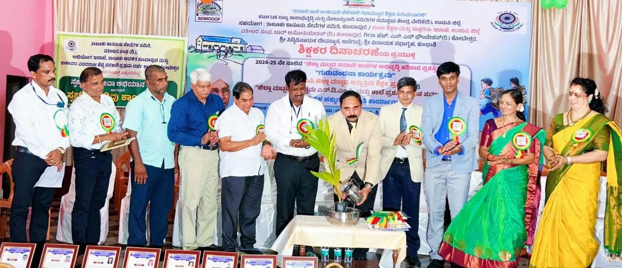 ಕರ್ನಾಟಕ ರಾಜ್ಯ ಶಾಲಾಭಿವೃದ್ಧಿ ಮತ್ತು ಮೇಲುಸ್ತುವಾರಿ ಸಮಿತಿಗಳ ಸಮನ್ವಯ ಕೇಂದ್ರ ವೇದಿಕೆ ಉಡುಪಿ ಜಿಲ್ಲೆ ನೇತೃತ್ವದಲ್ಲಿ ಕುಂದಾಪುರ ತಾಲೂಕು ಕಾನೂನು ಸೇವೆಗಳ ಸಮಿತಿ ಸಹಯೋಗದಲ್ಲಿ ಶಾಲಾ ಶಿಕ್ಷಣ ಮತ್ತು ಸಾಕ್ಷರತಾ ಇಲಾಖೆ, ಉಡುಪಿ ಜಿಲ್ಲೆ ವಕೀಲರ ಸಂಘ, ಬಾರ್ ಅಸೋಸಿಯೇಶನ್ ಕುಂದಾಪುರ, ಗೀತಾ ಎಚ್.ಎಸ್.ಎನ್. ಫೌಂಡೇಶನ್ ಕೋಟೇಶ್ವರ, ಶ್ರೀ ಸಿದ್ಧಿವಿನಾಯಕ ದೇವಸ್ಥಾನ ಆನೆಗುಡ್ಡೆ, ಶ್ರೀವಿನಾಯಕ ಸಭಾಗೃಹ ಕುಂಭಾಶಿ, ಮಗು ಮತ್ತು ಕಾನೂನು ಕೇಂದ್ರ, ನ್ಯಾಶನಲ್ ಲಾ ಸ್ಕೂಲ್ ಆಫ್ ಇಂಡಿಯಾ ಯುನಿರ್ವಸಿಟಿ ಬೆಂಗಳೂರು ಇವುಗಳ ಸಂಯುಕ್ತ ಆಶ್ರಯದಲ್ಲಿ ರವಿವಾರ ಕುಂಭಾಶಿ ಆನೆಗುಡ್ಡೆ ಶ್ರೀವಿನಾಯಕ ಸಭಾಗೃಹದಲ್ಲಿ ಶಿಕ್ಷಕರ ದಿನಾಚರಣೆಯ ಪ್ರಯುಕ್ತ ಆಯೋಜಿಸ ಲಾದ ಜಿಲ್ಲಾ ಮಟ್ಟದ ಪ್ರಶಸ್ತಿ ಪ್ರದಾನ ಸಮಾರಂಭ ಹಾಗೂ ಮಕ್ಕಳ ಹಕ್ಕುಗಳ ಮಾಹಿತಿ ಕಾರ್ಯಾಗಾರದಲ್ಲಿ ಅವರು ಮಾತನಾಡುತ್ತಿದ್ದರು.