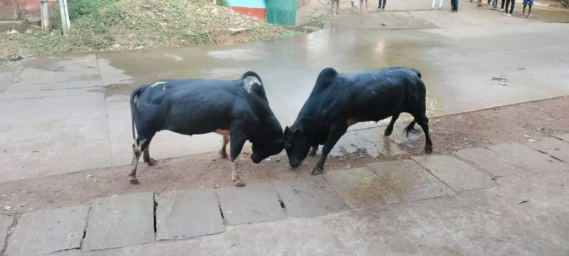 ರಸ್ತೆಯಲ್ಲಿಯೇ ಗೂಳಿ ಕಾಳಗ: ವಾಹನ ಸಂಚಾರಕ್ಕೆ ತೊಂದರೆ