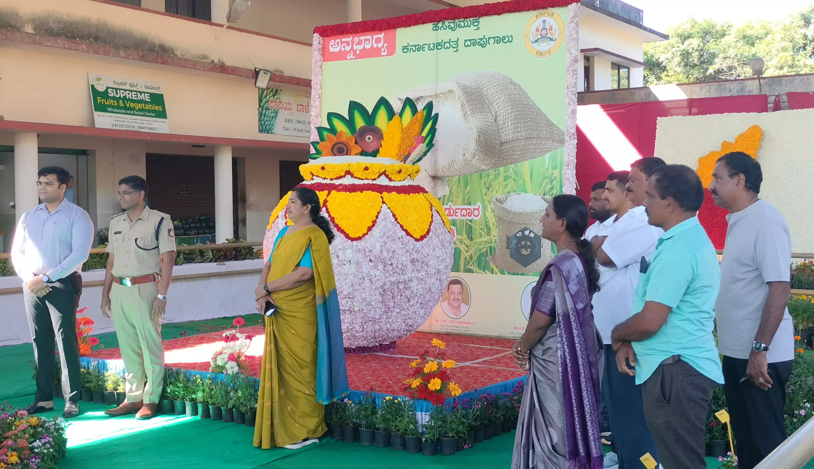 ಅನ್ನಭಾಗ್ಯದ ಅಕ್ಷಯ ಪಾತ್ರೆಗೆ ಹೂವಿನ ಅಲಂಕಾರ ಮಾಡಲಾಗಿದ್ದರೆ, ಯುವ ನಿಧಿ ಯೋಜನೆ ಮುಂದೆ ಪದವೀಧರನ ಮೂರ್ತಿ ಇದೆ. ವಿದ್ಯುತ್ ಬಲ್ಬ್ ಮಾದರಿಗೆ ಹೂವಿನ ಅಲಂಕಾರ ಗೃಹಜ್ಯೋತಿಯ ಸೂಚಕವಾದರೆ, ಶಕ್ತಿ ಯೋಜನೆ ಸಂಕೇತವಾಗಿ ಕೆಂಪು ಸರಕಾರಿ ಬಸ್, ಗೃಹಲಕ್ಷ್ಮೀ ಯೋಜನೆಯಲ್ಲಿ ಮಹಿಳೆ ಎದುರು ನೋಟಿನ ಕಂತೆ ... ರಾಜ್ಯ ಸರಕಾರದ ಪಂಚ ಗ್ಯಾರಂಟಿಗಳನ್ನು ಪ್ರತಿಬಿಂಬಿಸುತ್ತಿವೆ.