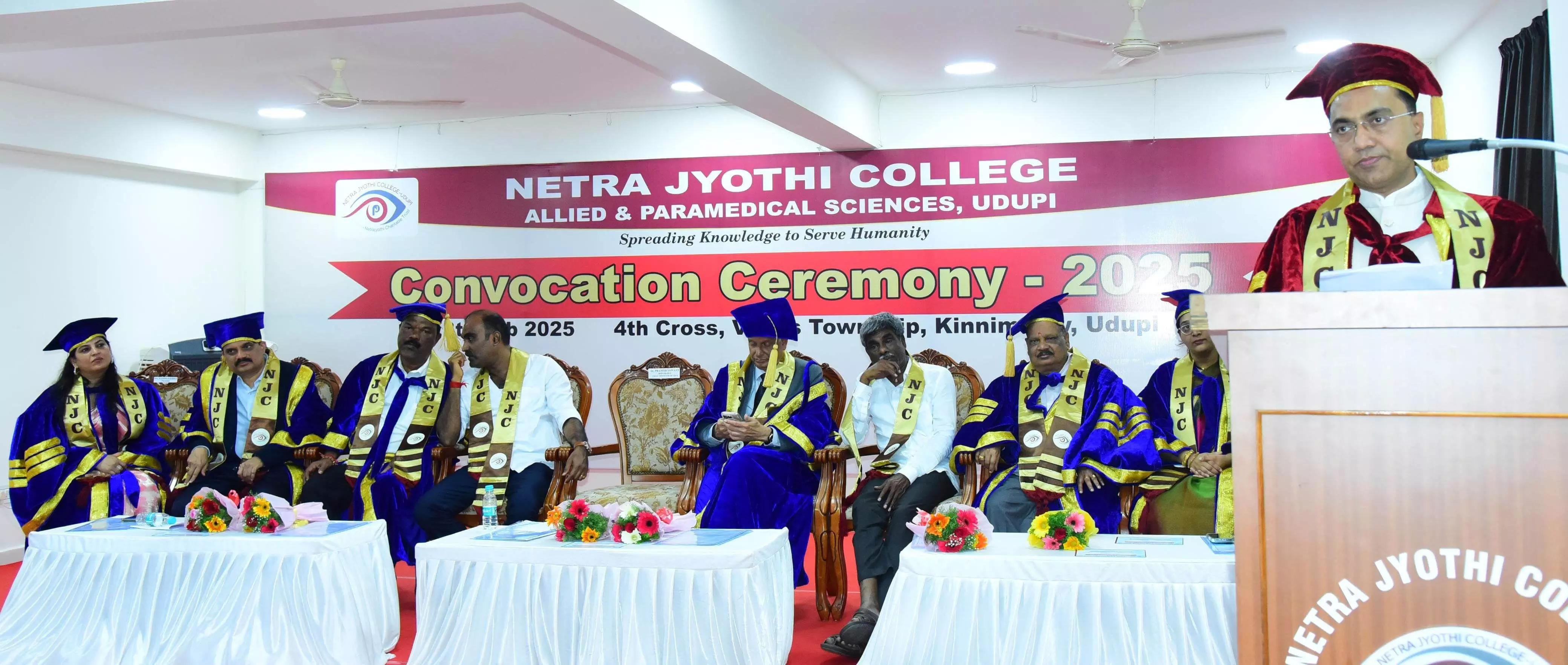 ಉಡುಪಿ ನೇತ್ರಜ್ಯೋತಿ ಚಾರಿಟೇಬಲ್ ಟ್ರಸ್ಟ್ ಹಾಗೂ ಪ್ರಸಾದ್ ನೇತ್ರಾಲಯ ಸೂಪರ್ ಸ್ಪೆಷಾಲಿಟಿಯ ಸಹಸಂಸ್ಥೆ ಯಾಗಿರುವ ಉಡುಪಿಯ ಕಿನ್ನಿಮುಲ್ಕಿ ವೇಗಾಸ್ ಟೌನ್ಶಿಪ್ನಲ್ಲಿರುವ ನೇತ್ರಜ್ಯೋತಿ ಇನ್ಸ್ಟಿಟ್ಯೂಟ್ ಆಫ್ ಅಲೈಡ್ ಹೆಲ್ತ್ ಸೈನ್ಸಸ್ ಹಾಗೂ ನೇತ್ರಜ್ಯೋತಿ ಕಾಲೇಜ್ ಆಫ್ ಪಾರಾ ಮೆಡಿಕಲ್ ಸೈನ್ಸಸ್ ಇದರ ಘಟಿಕೋತ್ಸವದಲ್ಲಿ ವಿದ್ಯಾರ್ಥಿಗಳಿಗೆ ಗುರುವಾರ ಪದವಿ ಪ್ರದಾನ ಮಾಡಿ ಅವರು ಮಾತನಾಡುತಿದ್ದರು.