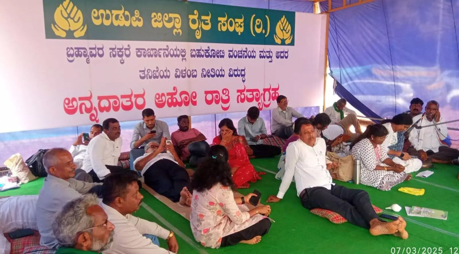 ಬ್ರಹ್ಮಾವರ, ಮಾ.7: ಬ್ರಹ್ಮಾವರದ ದಕ್ಷಿಣ ಕನ್ನಡ ಜಿಲ್ಲಾ ಸಹಕಾರಿ ಸಕ್ಕರೆ ಕಾರ್ಖಾನೆಯ ಗುಜರಿ ಮಾರಾಟದಲ್ಲಿ ನಡೆದಿರುವ 14 ಕೋಟಿ ರೂ.ಗಳಿಗೂ ಅಧಿಕ ಅವ್ಯವಹಾರಕ್ಕೆ ಸಂಬಂಧಿಸಿದಂತೆ ಸರಕಾರದ ಪರವಾಗಿ ಕಬ್ಬು ಅಭಿವೃದ್ಧಿ ಹಾಗೂ ಸಕ್ಕರೆ ಸಚಿವ ಶಿವಾನಂದ ಎಸ್.ಪಾಟೀಲ್ ಬುಧವಾರ ರಾಜ್ಯ ವಿಧಾನಪರಿಷತ್ನಲ್ಲಿ ನೀಡಿದ ಉತ್ತರ ಹಾಗೂ ಧರಣಿಯನ್ನು ಕೈಬಿಡುವಂತೆ ಮಾಡಿಕೊಂಡ ಮನವಿಯ ಹೊರತಾಗಿಯೂ ಉಡುಪಿ ಜಿಲ್ಲಾ ರೈತ ಸಂಘದ ನೇತೃತ್ವದಲ್ಲಿ ಕಳೆದ 14 ದಿನಗಳಿಂದ ನಡೆಸುತ್ತಿರುವ ಅಹೋರಾತ್ರಿ ಧರಣಿ ರೈತರು ಮುಂದುವರಿಸಿದ್ದಾರೆ.
