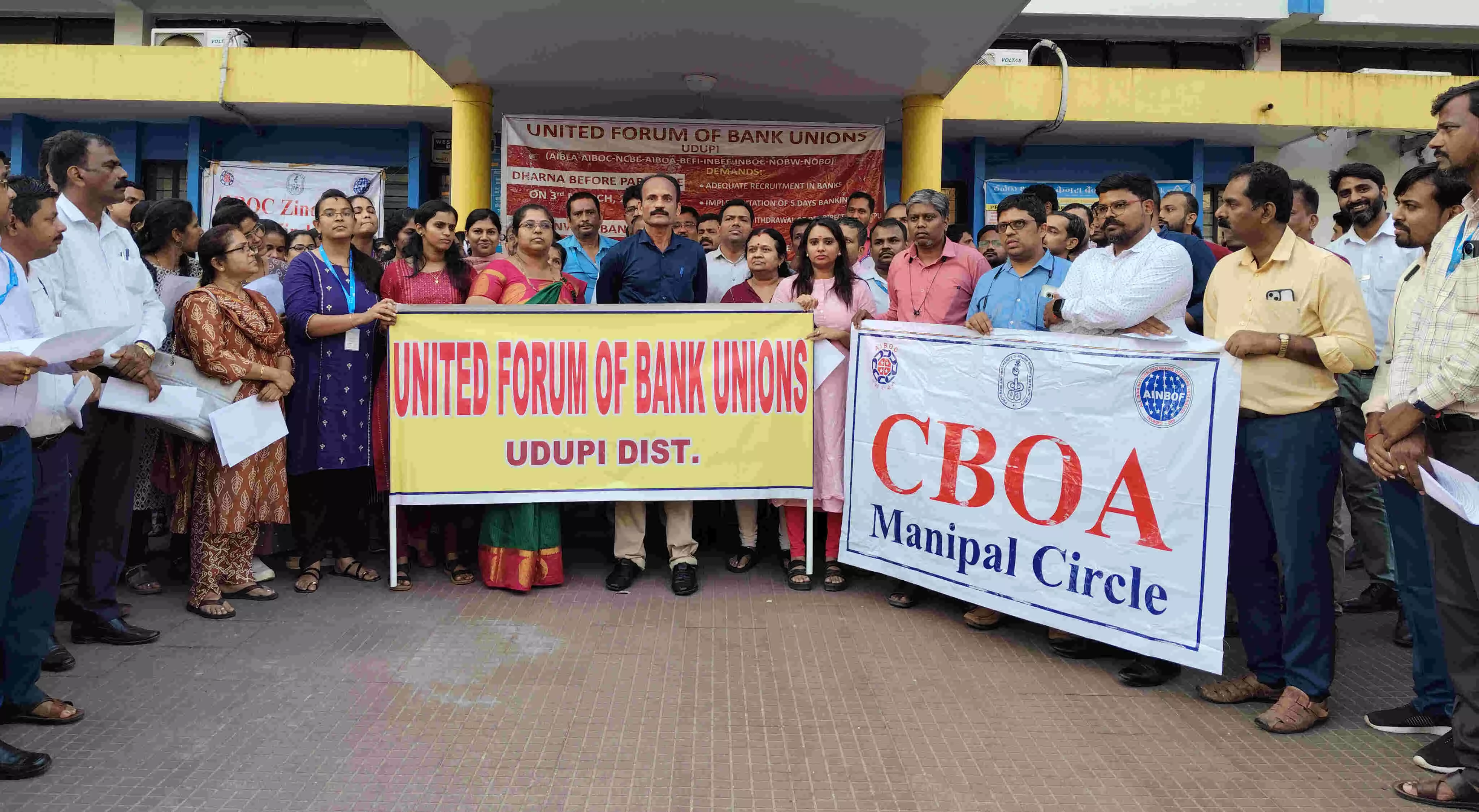 ಬ್ಯಾಂಕ್ ಯೂನಿಯನ್ಗಳ ಒಕ್ಕೂಟದ ನೇತೃತ್ವದಲ್ಲಿ ಧರಣಿ