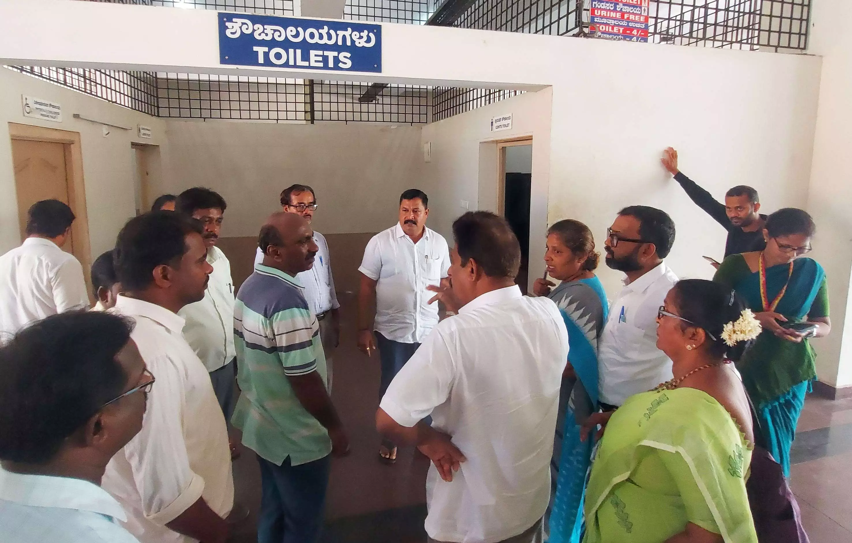 ಶೌಚಾಲಯಕ್ಕೆ ಭೇಟಿ ನೀಡಿದಾಗ ಶುಚಿತ್ವದ ಕೊರತೆಯಿಂದ ಗಬ್ಬು ವಾಸನೆ ಬೀರುತ್ತಿತ್ತು. ಪುರುಷರ ಶೌಚಾಲಯದಲ್ಲಿ ಬಿಯರ್ ಬಾಟಲಿ ಹಾಗೂ ಮಹಿಳೆ ಶೌಚಾಲಯದಲ್ಲಿ ಕಸದ ರಾಶಿ ಕಂಡುಬಂತು. ಕೂಡಲೇ ಸಮಿತಿಯವರು ಸಂಬಂಧಪಟ್ಟವರನ್ನು ತರಾಟೆಗೆ ತೆಗೆದುಕೊಂಡು ಶುಚಿತ್ವ ಕಾಪಾಡುವಂತೆ ಸೂಚನೆ ನೀಡಿದರು. ಅದೇ ರೀತಿ ವಿಕಲಚೇತನರ ಶೌಚಾಲಯದಲ್ಲಿ ಫ್ಲೇಶ್ ವ್ಯವಸ್ಥೆ ಇಲ್ಲದಿರುವುದು ಮತ್ತು ಗಾಲಿ ಕುರ್ಚಿಯನ್ನು ಬೇರೆಲ್ಲೋ ಇಟ್ಟಿರುವುದಕ್ಕೆ ಸಮಿತಿಯವರು ಅಸಮಾಧಾನ ವ್ಯಕ್ತಪಡಿಸಿದರು.