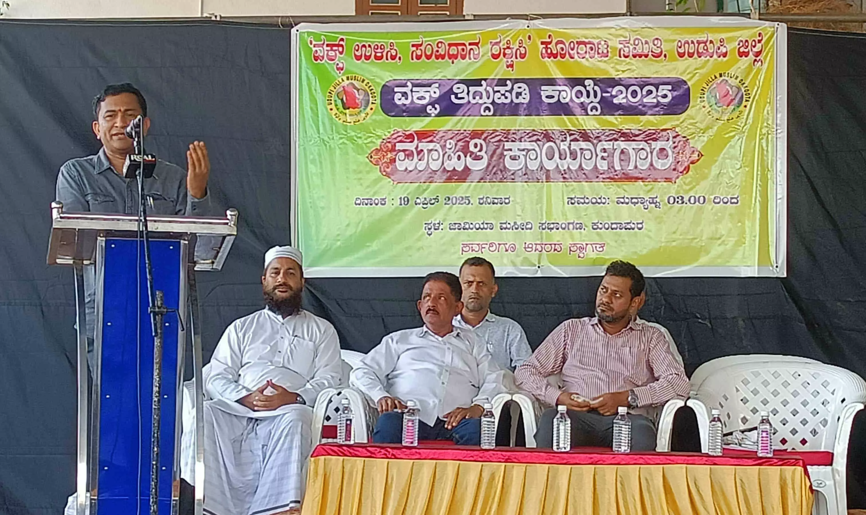 ವಕ್ಫ್ ಉಳಿಸಿ-ಸಂವಿಧಾನ ರಕ್ಷಿಸಿ ಹೋರಾಟ ಸಮಿತಿ ಉಡುಪಿ ಜಿಲ್ಲೆ ಇದರ ವತಿಯಿಂದ ಕುಂದಾಪುರದ ಜಾಮಿಯಾ ಮಸೀದಿ ವಠಾರದಲ್ಲಿ ಶನಿವಾರ ಆಯೋಜಿಸಲಾದ ವಕ್ಫ್ ತಿದ್ದುಪಡಿ ಕಾಯ್ದೆಯ ಕುರಿತ ತಾಲೂಕು ಮಟ್ಟದ ಮಾಹಿತಿ ಕಾರ್ಯಾಗಾರದಲ್ಲಿ ಭಾಗವಹಿಸಿ ಅವರು ಮಾತನಾಡುತಿದ್ದರು.
