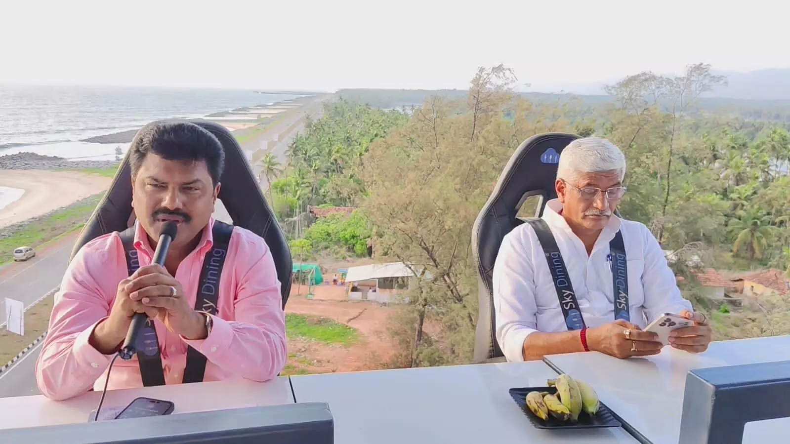 ಸ್ಕೈಡೈನಿಂಗ್ನಲ್ಲಿ ಸಚಿವರು: ಇದಕ್ಕೂ ಮೊದಲು ಕೇಂದ್ರ ಸಚಿವರು ಮರವಂತೆಯಲ್ಲಿ ಕೆಲ ತಿಂಗಳ ಹಿಂದೆ ಆರಂಭಗೊಂಡ ಸ್ಕೈ ಡೈನಿಂಗ್ನಲ್ಲಿ ಕುಳಿತು ಮರವಂತೆಯ ಅದ್ಭುತ ಪ್ರಕೃತಿ ಸೌಂದರ್ಯವನ್ನು ವೀಕ್ಷಿಸಿದರು.